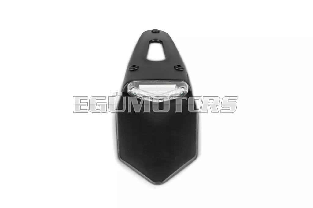 Praktikus 3 az 1-ben kiegészítő: rendszámtartó, hátsó sárvédő és LED hátsó lámpa egy termékben.