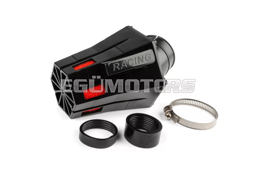 STR8 Evo légszűrő D.28-35 mm, 30°-os döntéssel, „Open Cell” szivaccsal és védőkupakkal, a jó szűrés és légáramlás érdekében.