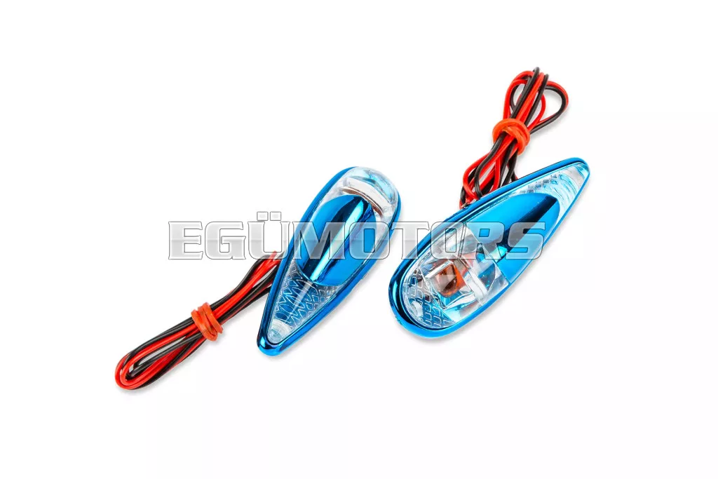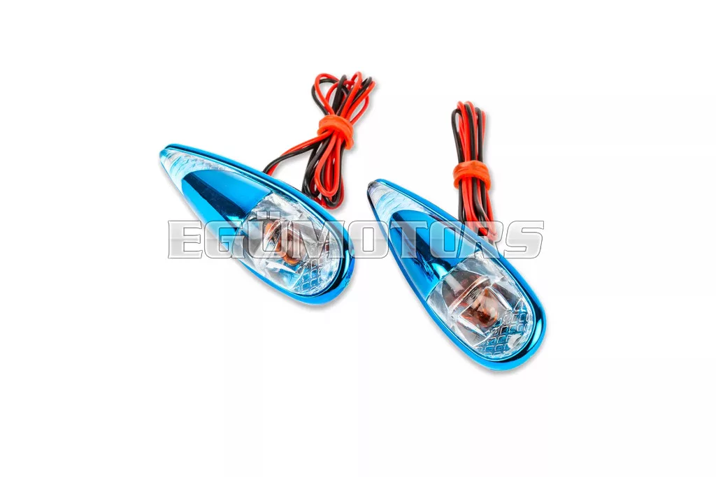 Ragasztható, csepp alakú „Fender” irányjelző / lámpa, kék / fehér / narancs kivitelben.