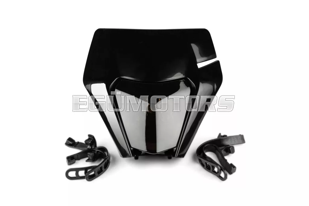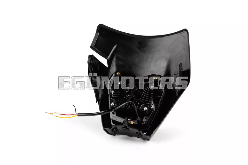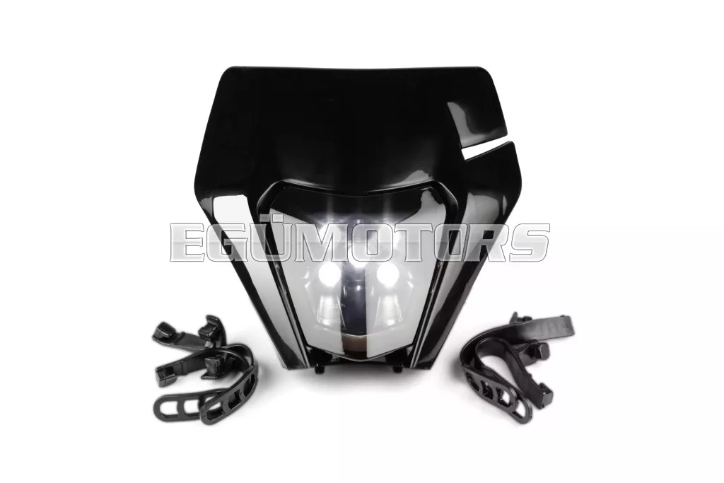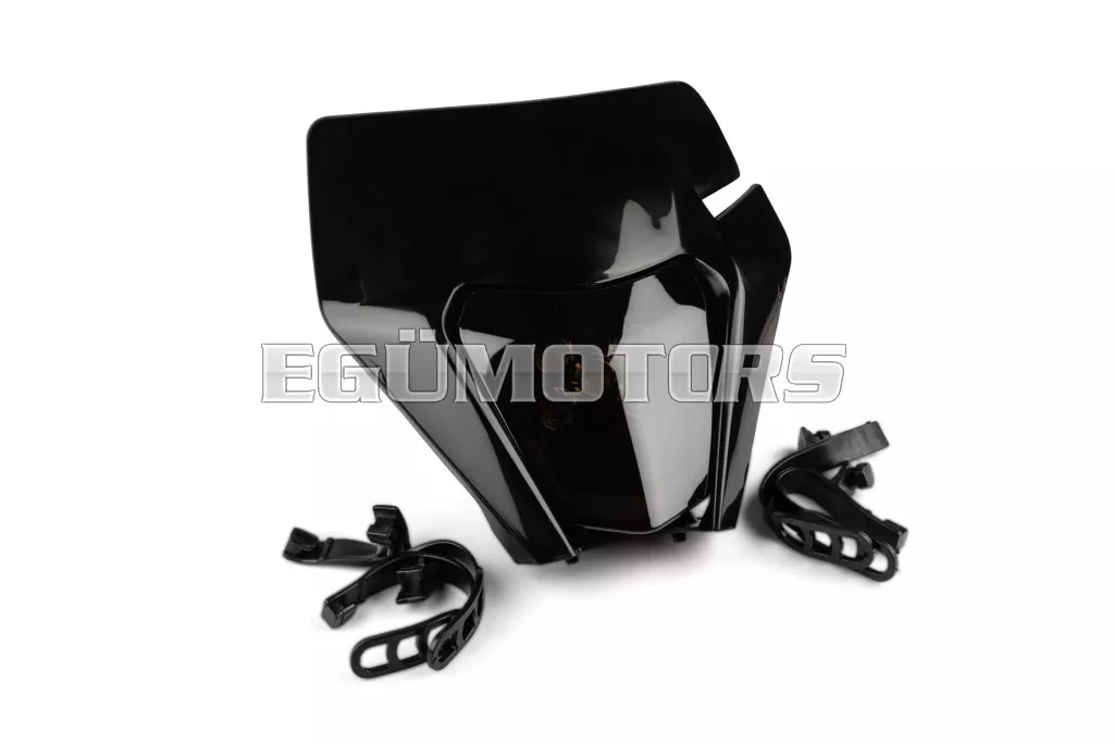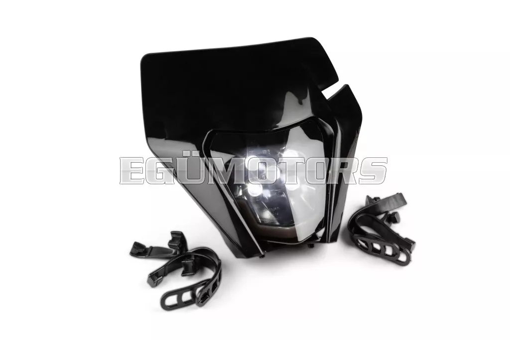 LED fényszóró burkolat KTM EXC 2020-2023, fekete, sötétített lencsével, 50cc-es supermoto, motocross, enduro motorokra vagy egyéb kétkerekű járművekre.