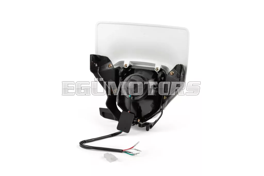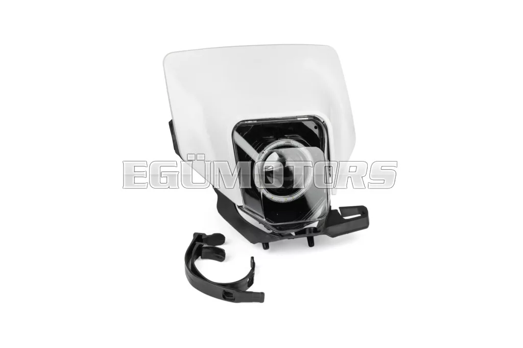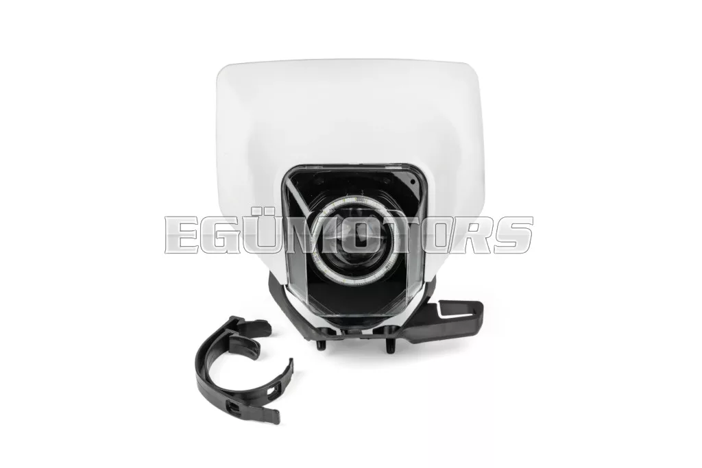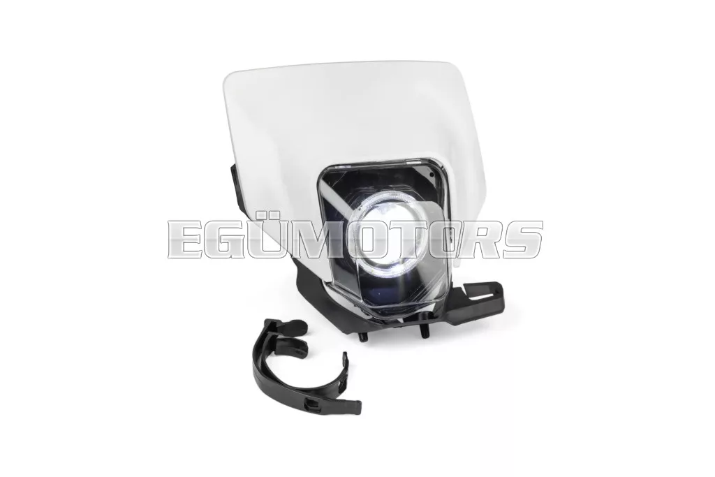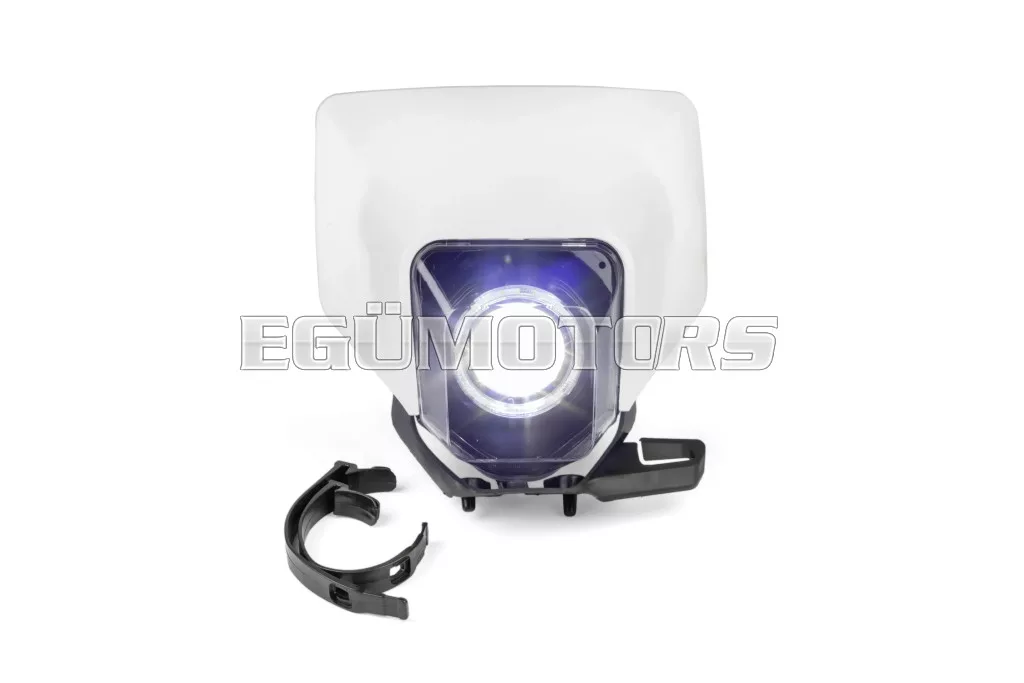 Husqvarna FE / TE típusú LED fényszóró burkolat, felszerelhető 50cc-es motorokra, motocross, supermoto, enduro vagy egyéb kétkerekű járművekre.