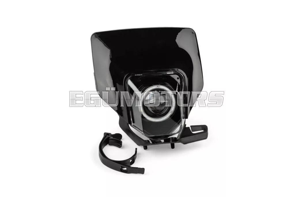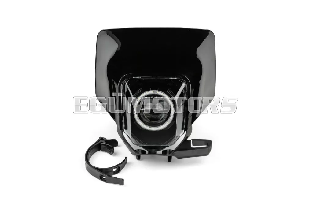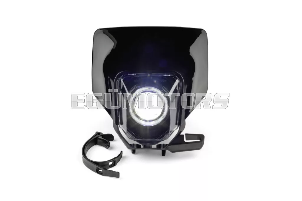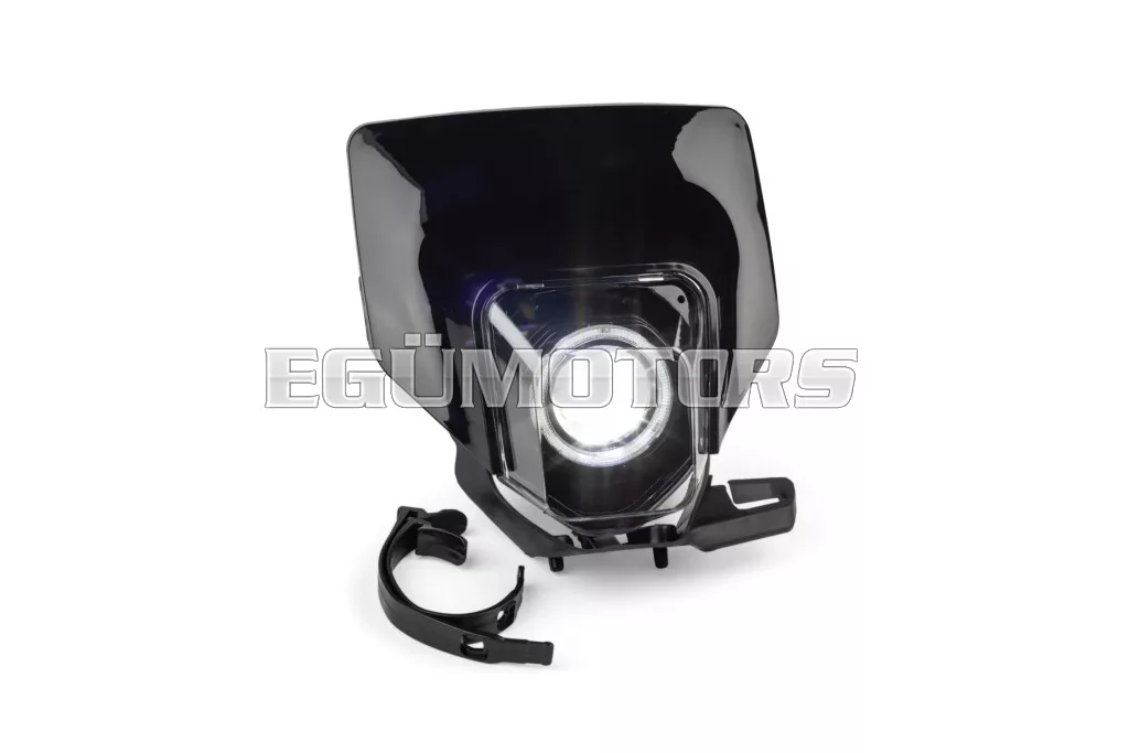 Husqvarna FE / TE típusú LED fényszóró burkolat, felszerelhető 50cc-es motorokra, motocross, supermoto, enduro vagy egyéb kétkerekű járművekre.
