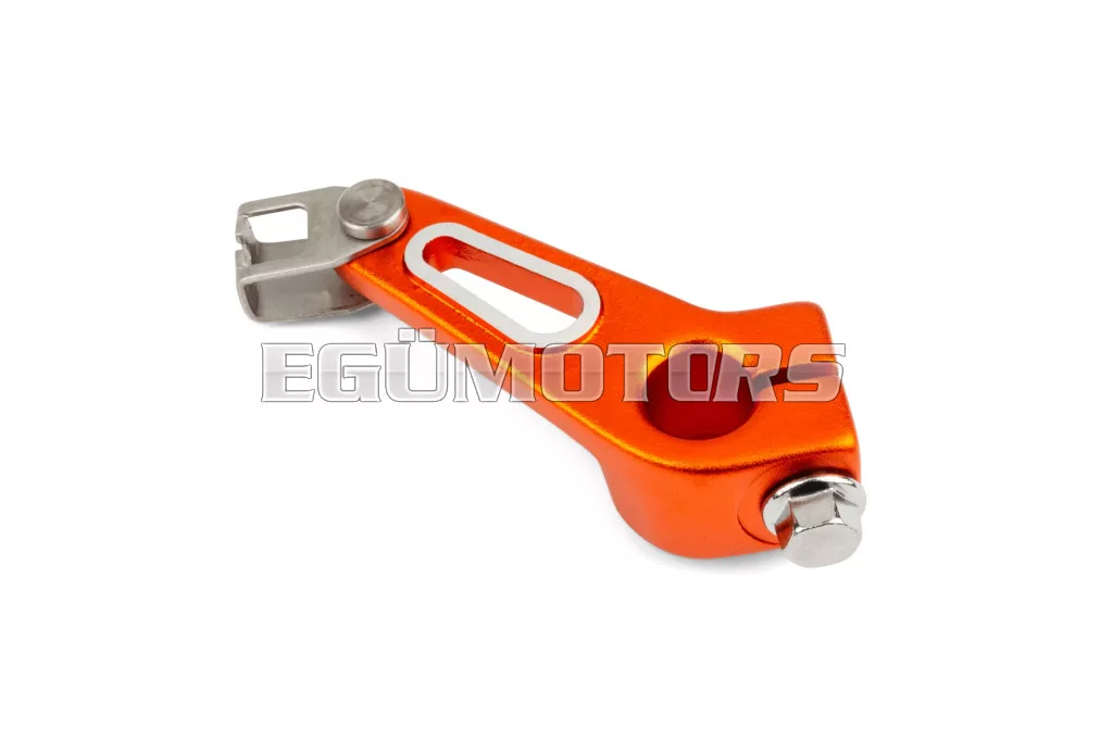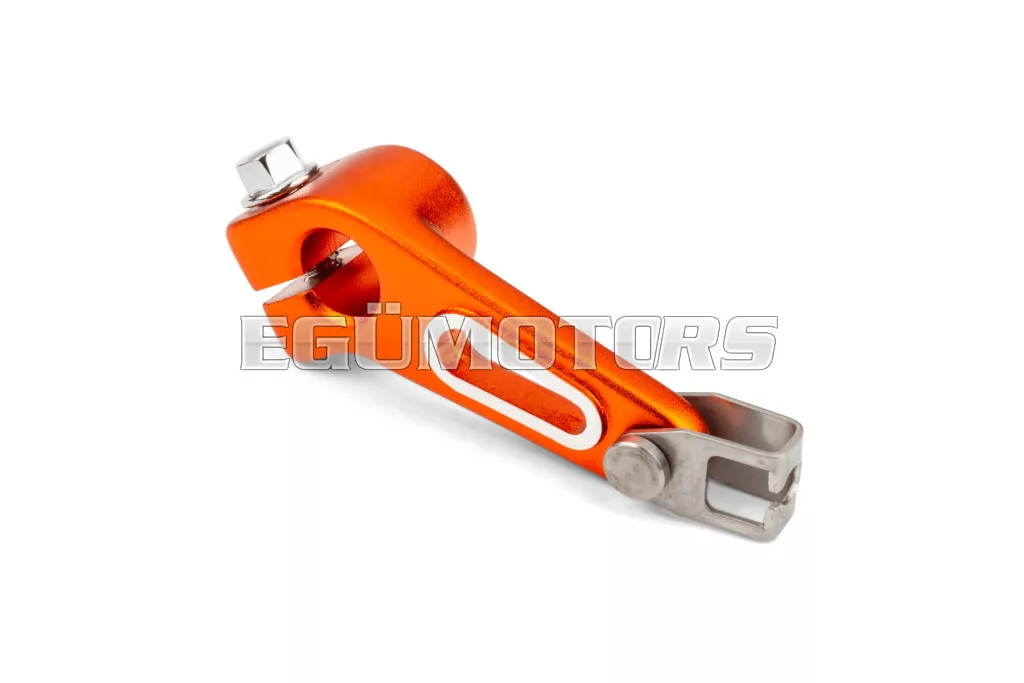 Kuplungkioldó kar alumíniumból, narancssárga színben, Derbi motorokhoz.