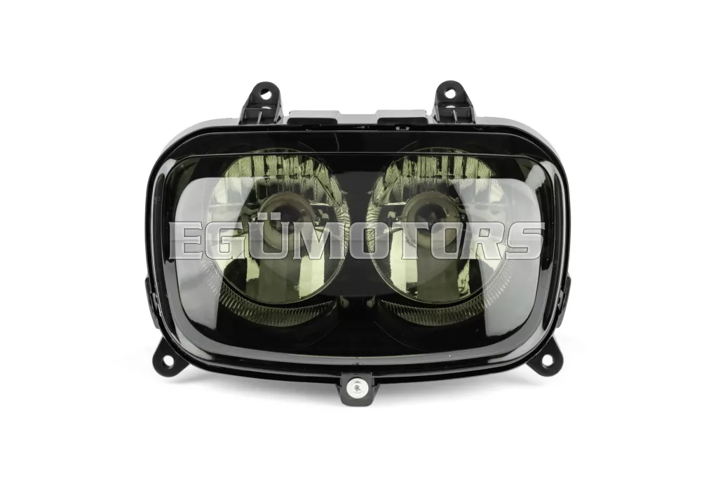 A fényszóró műszaki jellemzői megegyeznek a gyári (OEM) kivitelével, azonban sötétített lencsével rendelkezik a különleges esztétikai hatás érdekében. Az eredeti fényszóró helyére szerelhető, minden további átalakítás nélkül.