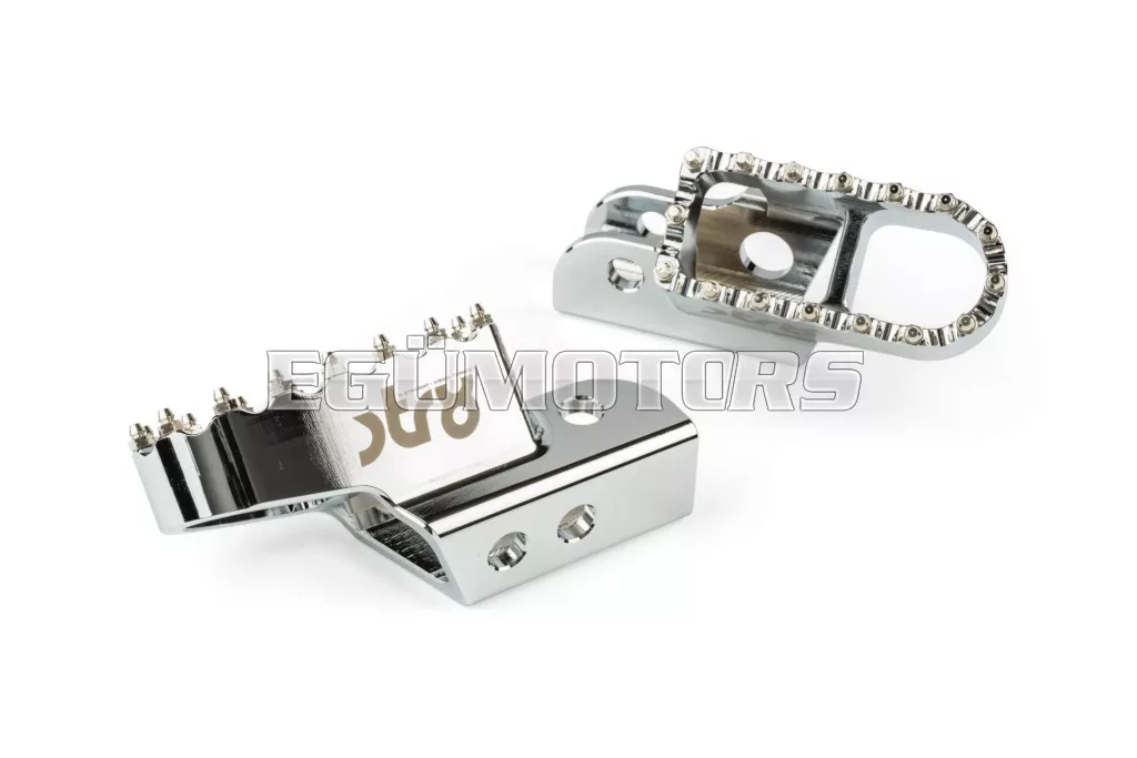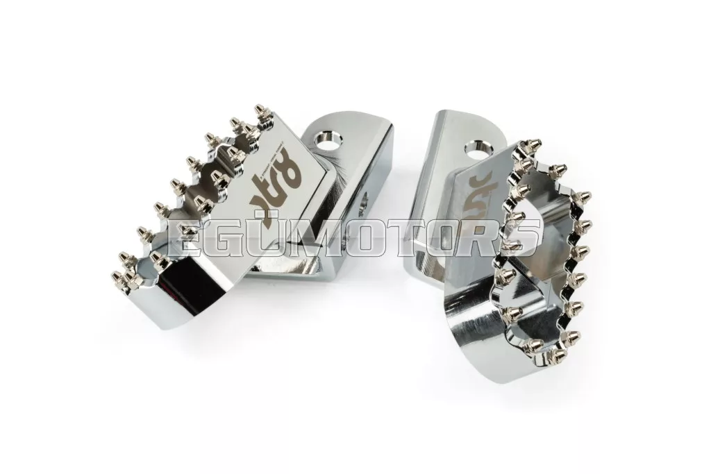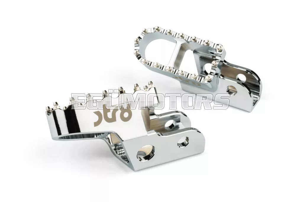 Adj stílust és jobb tapadást 50cc-es motorodnak: az STR8 vezetői lábtartók CNC-megmunkált, eloxált alumíniumból készülnek. Látványos megjelenést és stabil alátámasztást biztosítanak. Lézergravírozott STR8 logóval és agresszív, motocross stílusú fogazással a még jobb tapadás érdekében.