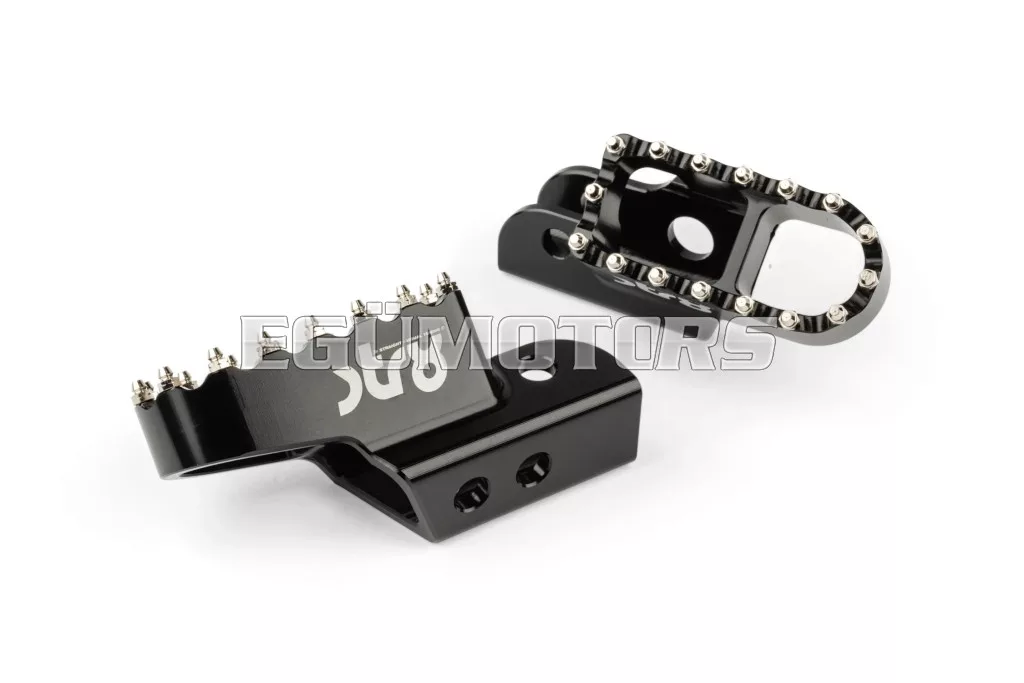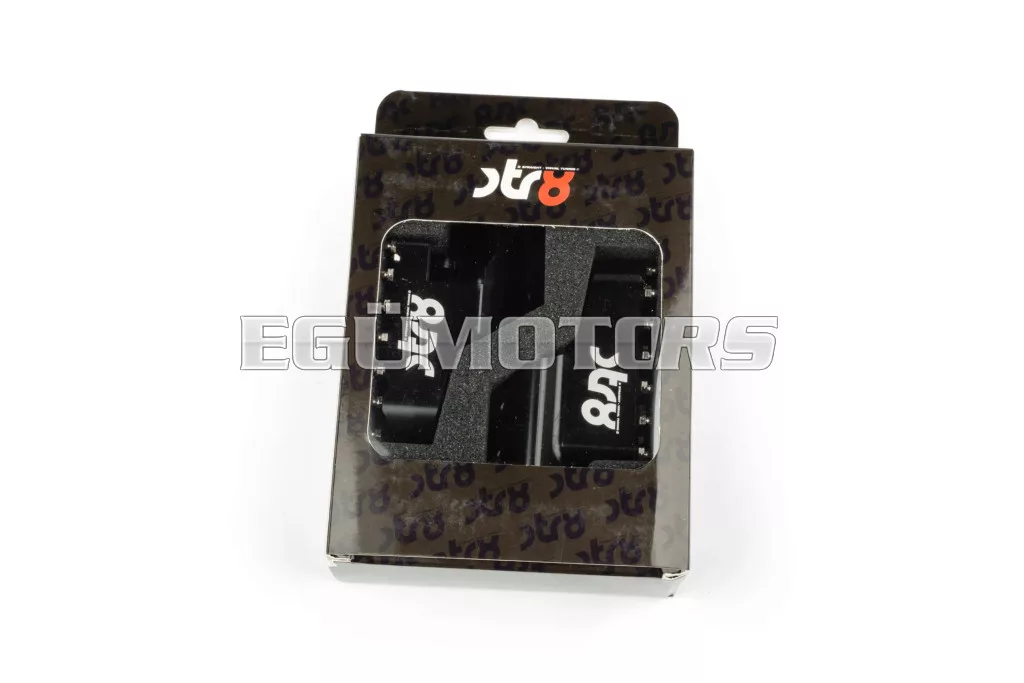 Adj stílust és jobb tapadást 50cc-es motorodnak: az STR8 vezetői lábtartók CNC-megmunkált, eloxált alumíniumból készülnek. Látványos megjelenést és stabil alátámasztást biztosítanak. Lézergravírozott STR8 logóval és agresszív, motocross stílusú fogazással a még jobb tapadás érdekében.