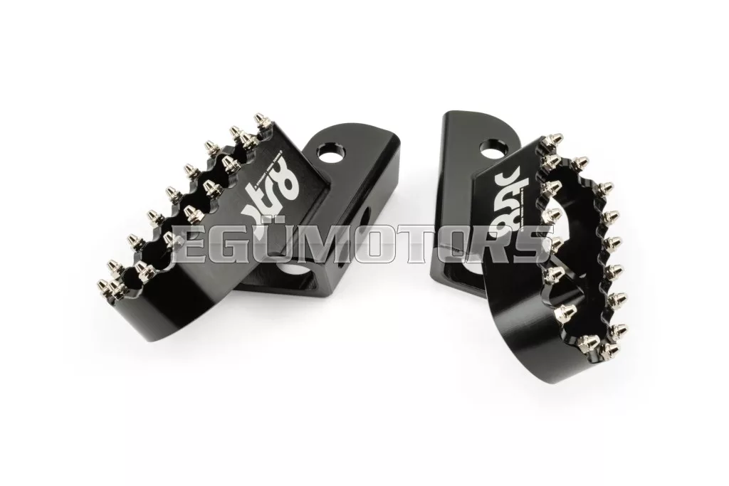 Az éles, motocross stílusú fogak kiváló tapadást biztosítanak, és érezhetően jobb tartást adnak a gyári lábtartókhoz képest, ideális sportos motorozáshoz.