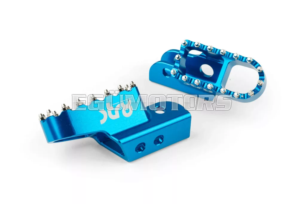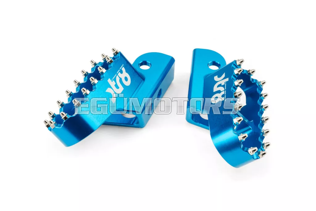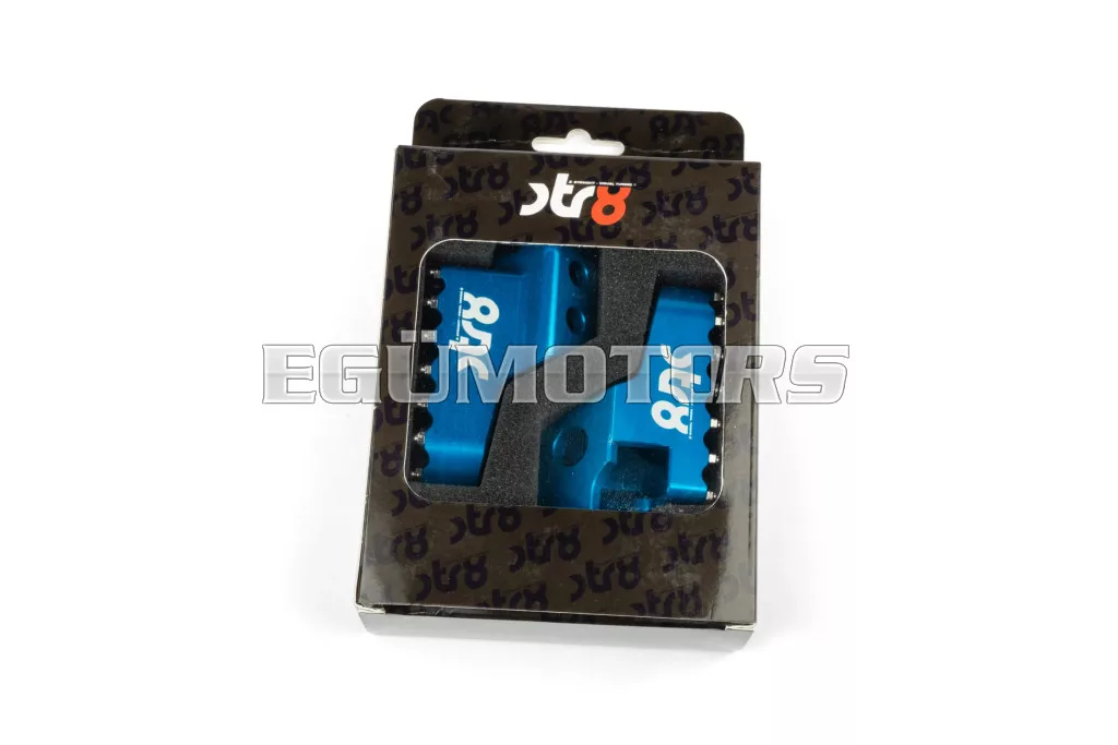 Adj stílust és jobb tapadást 50cc-es motorodnak: az STR8 vezetői lábtartók CNC-megmunkált, eloxált alumíniumból készülnek. Látványos megjelenést és stabil alátámasztást biztosítanak. Lézergravírozott STR8 logóval és agresszív, motocross stílusú fogazással a még jobb tapadás érdekében.