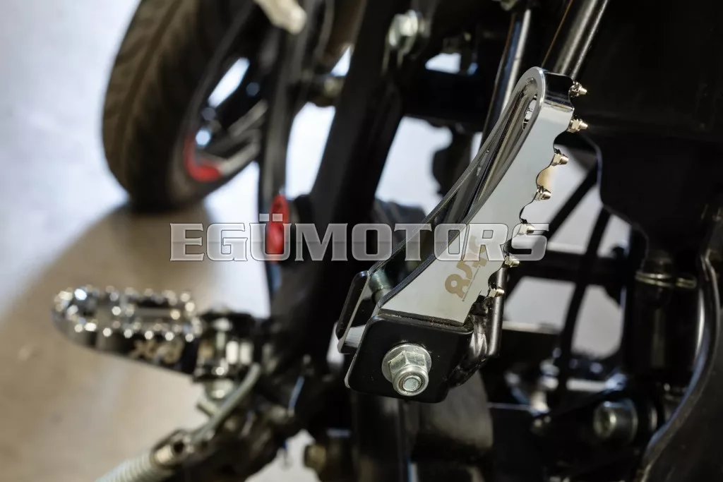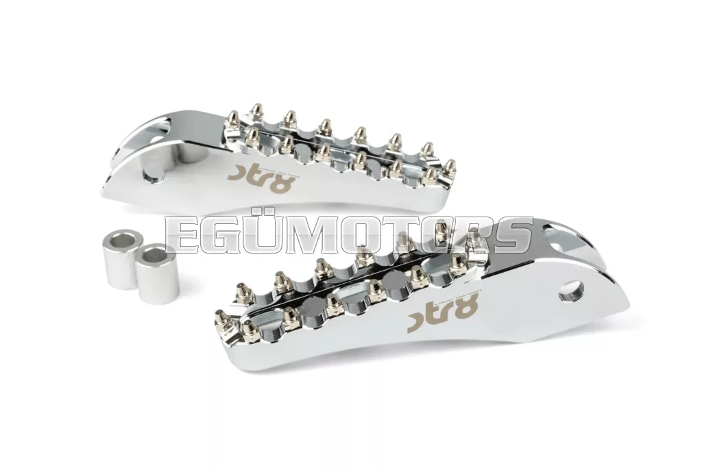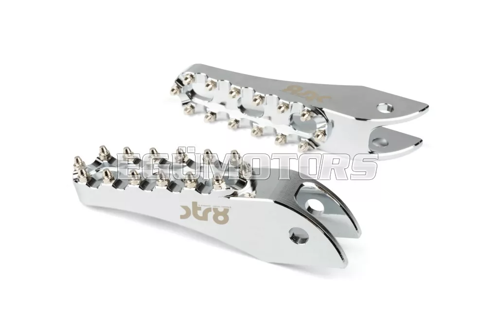 Adj stílust és jobb tapadást 50cc-es motorodnak: az STR8 utas lábtartók CNC-megmunkált, eloxált alumíniumból készülnek. Látványos megjelenést és stabil alátámasztást biztosítanak. Lézergravírozott STR8 logóval és agresszív, motocross stílusú fogazással a még jobb tapadás érdekében.