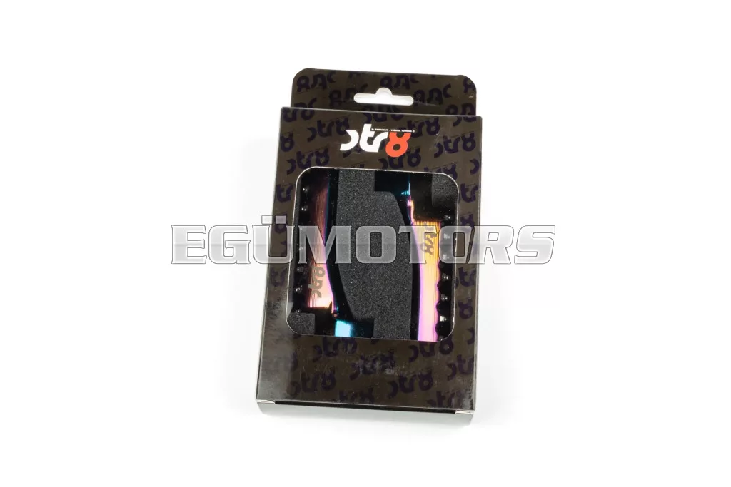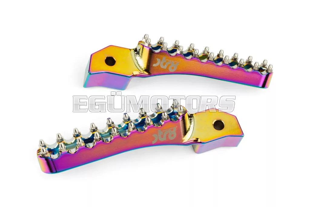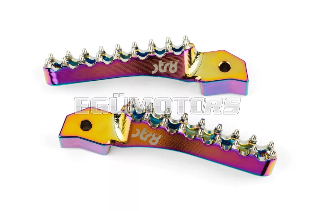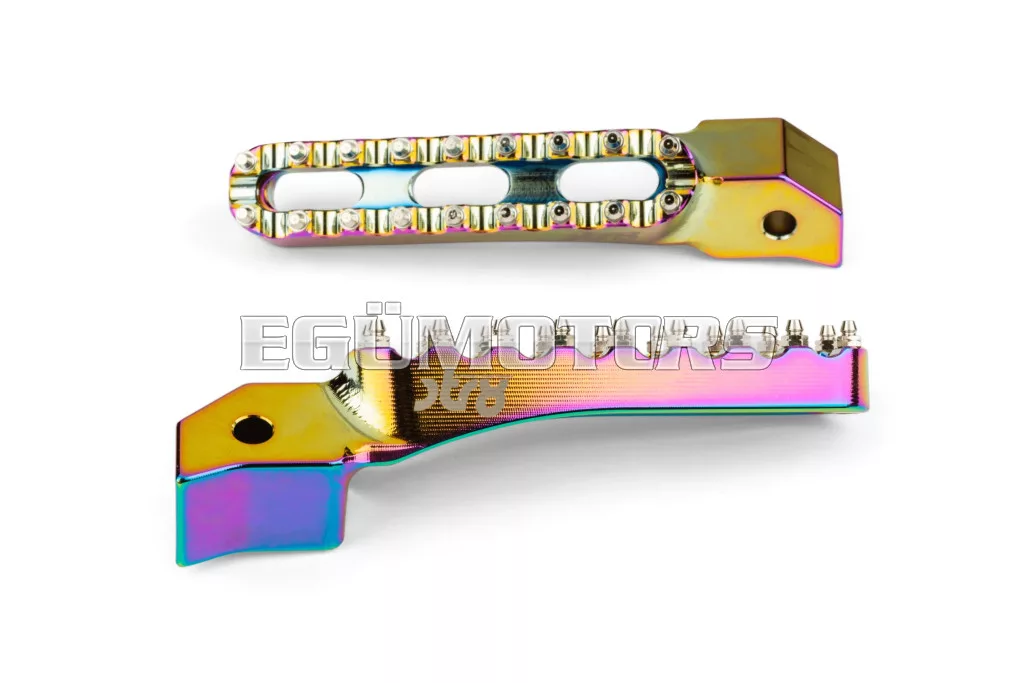 Adj stílust és jobb tapadást 50cc-es motorodnak: az STR8 utas lábtartók CNC-megmunkált, eloxált alumíniumból készülnek. Látványos megjelenést és stabil alátámasztást biztosítanak. Tisztán lézergravírozott STR8 logóval és agresszív, motocross stílusú fogazással a még jobb tapadás érdekében.