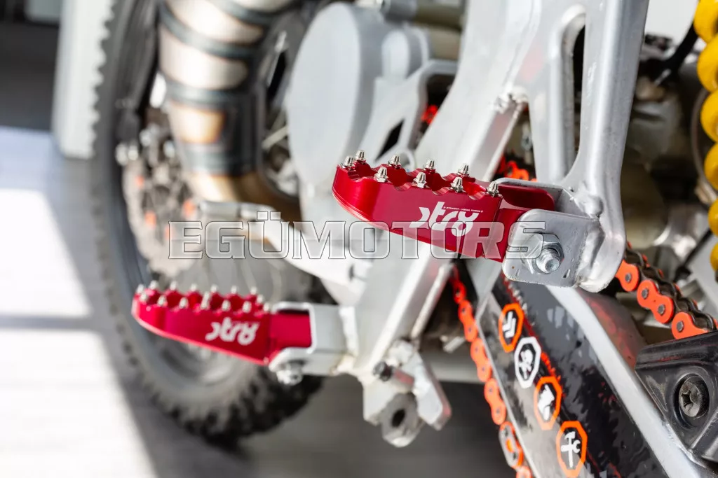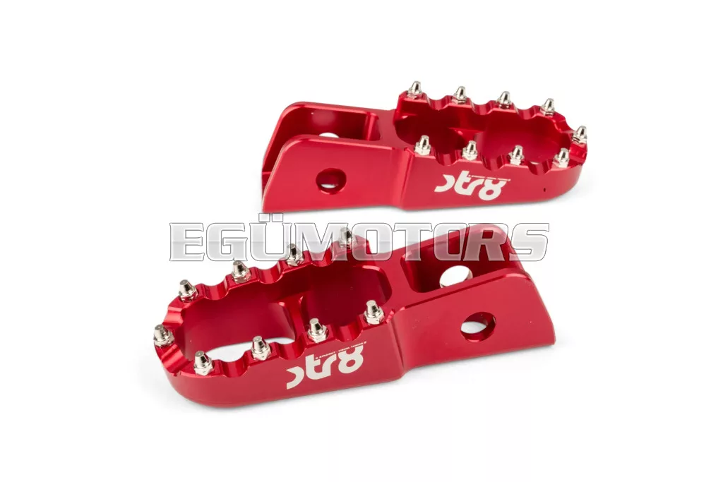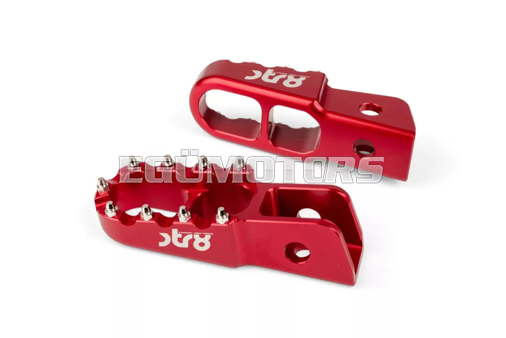 Adj stílust és jobb tapadást 50cc-es motorodnak: az STR8 utas lábtartók CNC-megmunkált, eloxált alumíniumból készülnek. Látványos megjelenést és stabil alátámasztást biztosítanak. Lézergravírozott STR8 logóval és agresszív, motocross stílusú fogazással a még jobb tapadás érdekében.