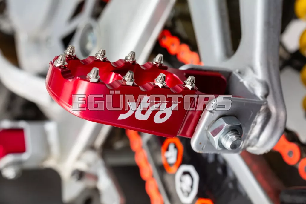 Az éles, motocross stílusú fogak kiváló tapadást biztosítanak, és érezhetően jobb tartást adnak a gyári lábtartókhoz képest, ideális sportos motorozáshoz.