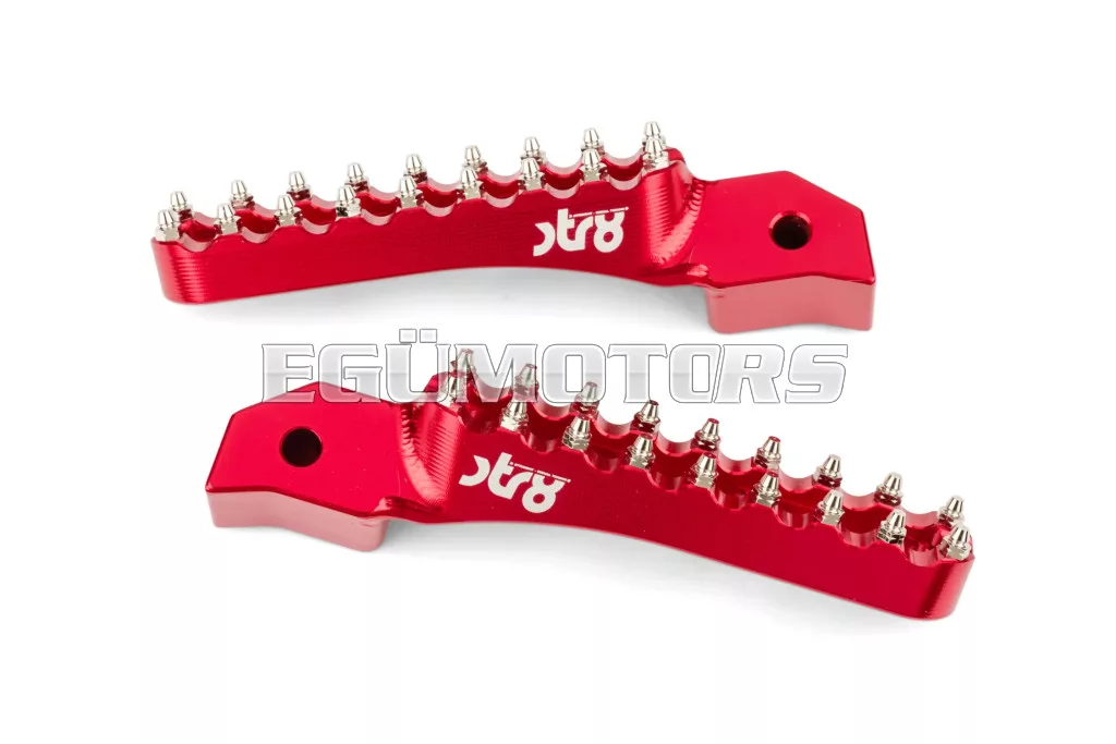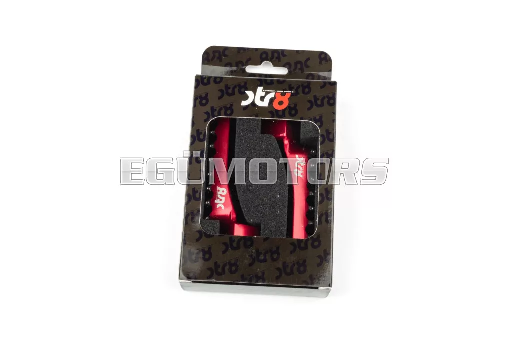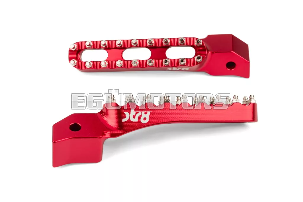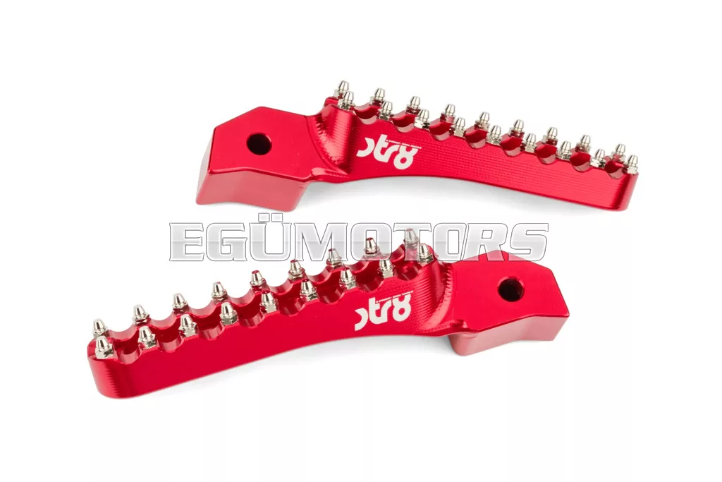 Adj stílust és jobb tapadást 50cc-es motorodnak: az STR8 utas lábtartók CNC-megmunkált, eloxált alumíniumból készülnek. Látványos megjelenést és stabil alátámasztást biztosítanak. Tisztán lézergravírozott STR8 logóval és agresszív, motocross stílusú fogazással a még jobb tapadás érdekében.