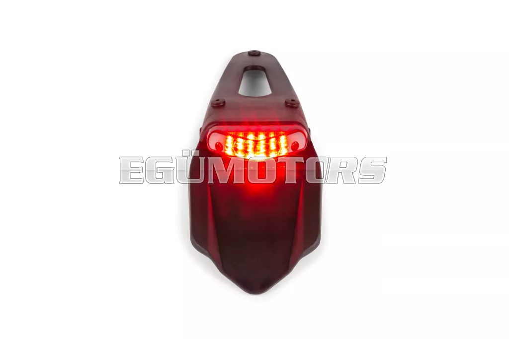 Rendszámtartó hátsó lámpával piros, 9 LED, 50cc Supermoto - supermotard / enduro motorokhoz.