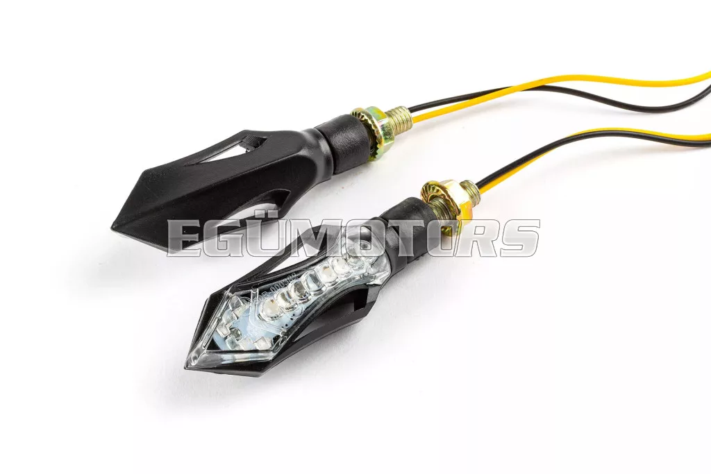 A henger alakú irányjelzők több erős LED-del vannak felszerelve. A különleges funkciójuk, hogy a LED-ek nem egyszerre világítanak, hanem egymás után, szekvenciálisan kapcsolódnak be.