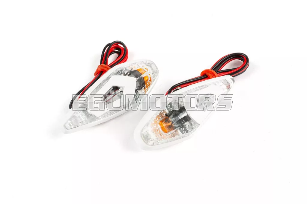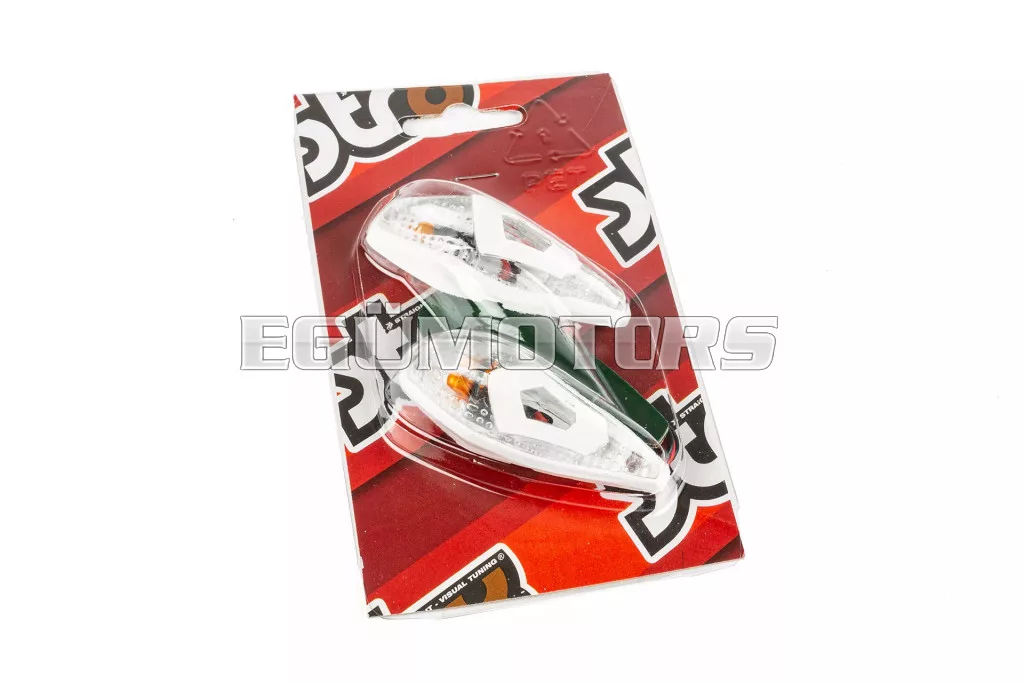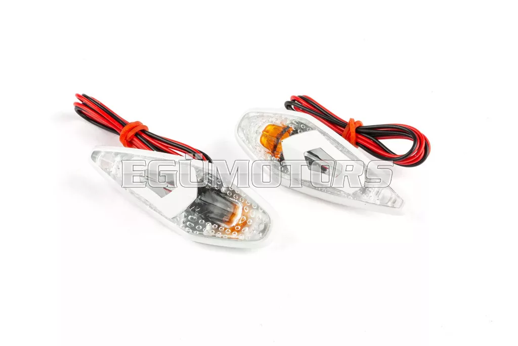 Szép, csepp alakú irányjelző / lámpa „Wing”, fehér / fehér / narancs kivitelben.