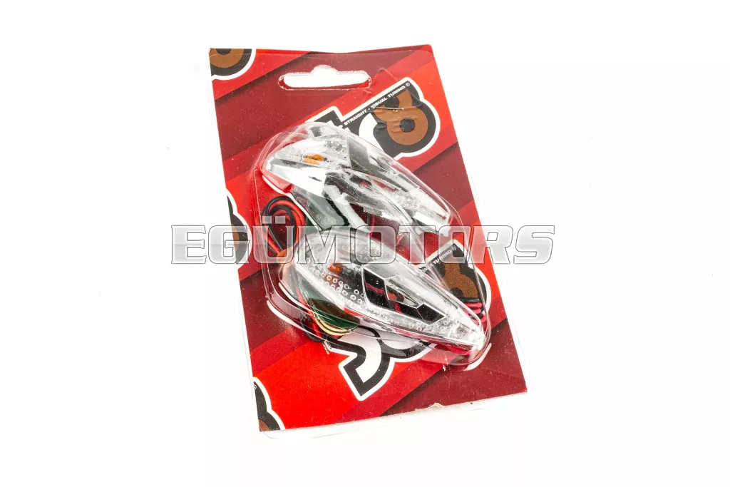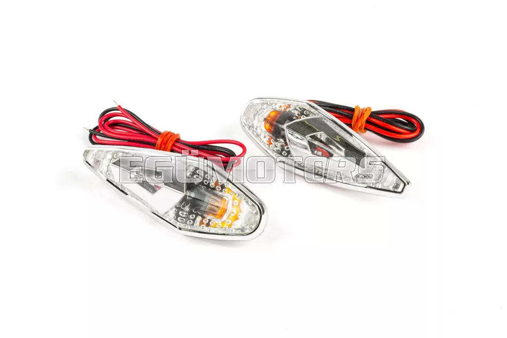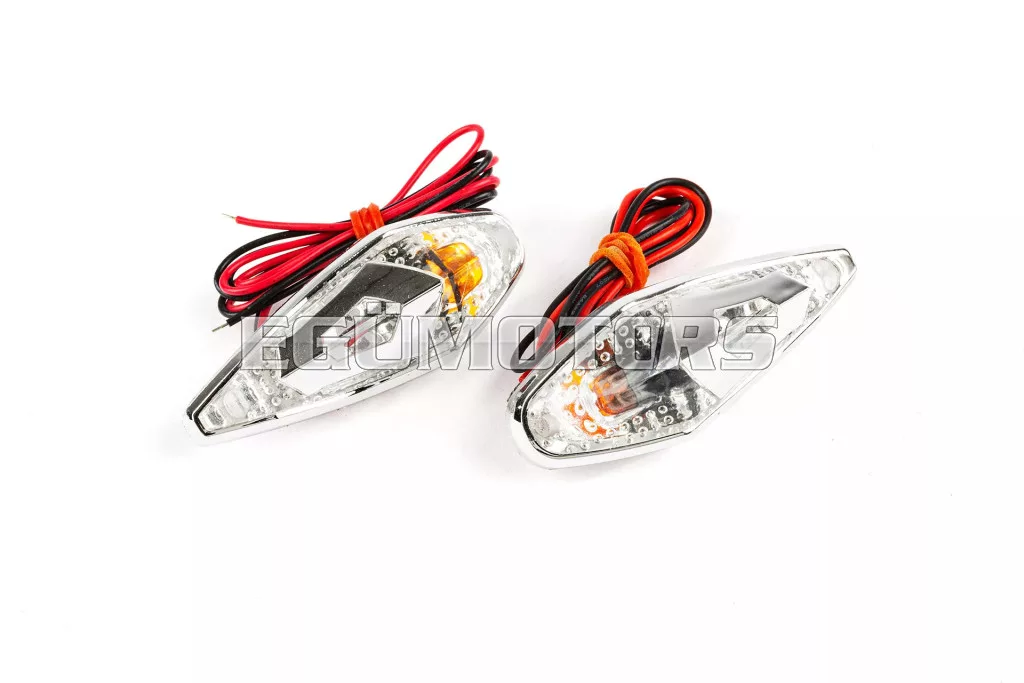 Szép, csepp alakú irányjelző / lámpa „Wing”, króm / fehér / narancs kivitelben.