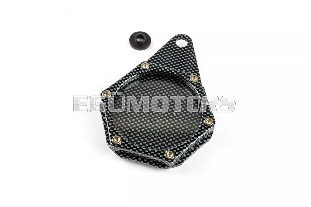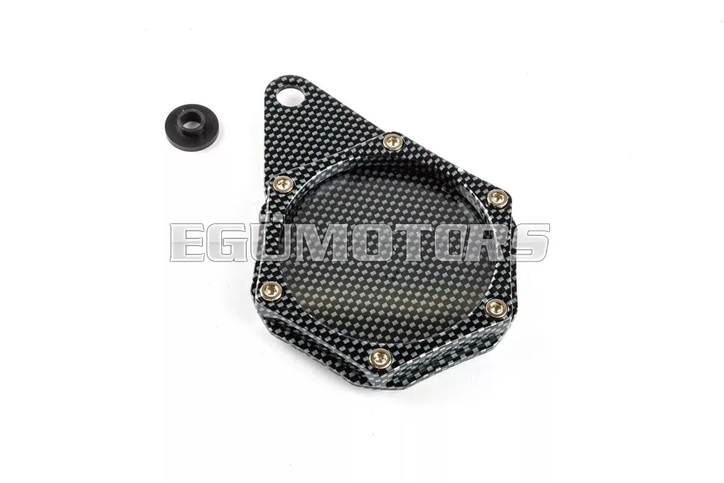 Kerek alumínium adókorong tartó karbon kivitelben, a Franciaországban és néhány más országban használt biztosítási korongok biztonságos rögzítéséhez.