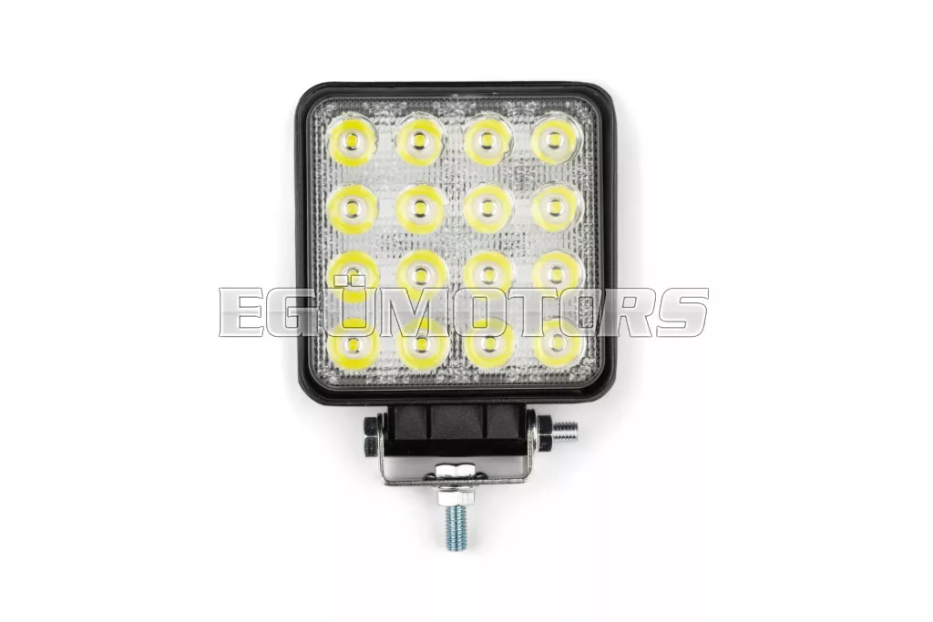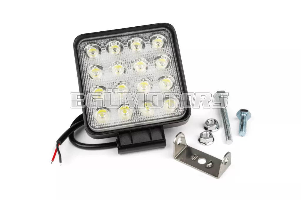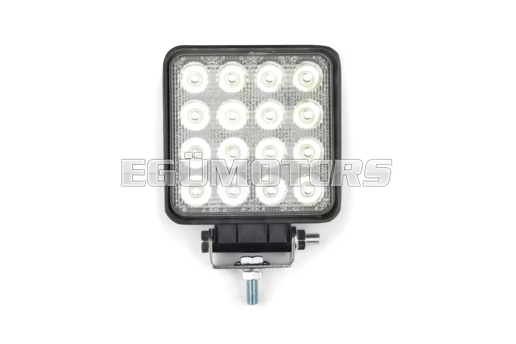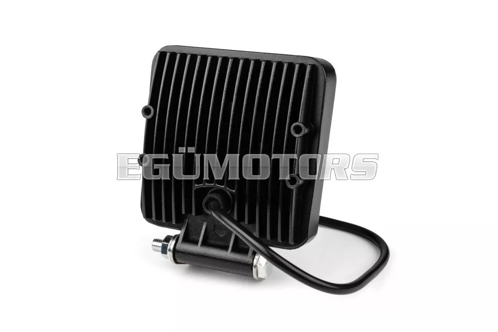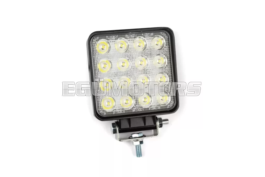 Ez a kiegészítő fényszóró fekete, rendkívül masszív alumínium házból és fehér üvegből áll, és 16 LED-del van felszerelve.