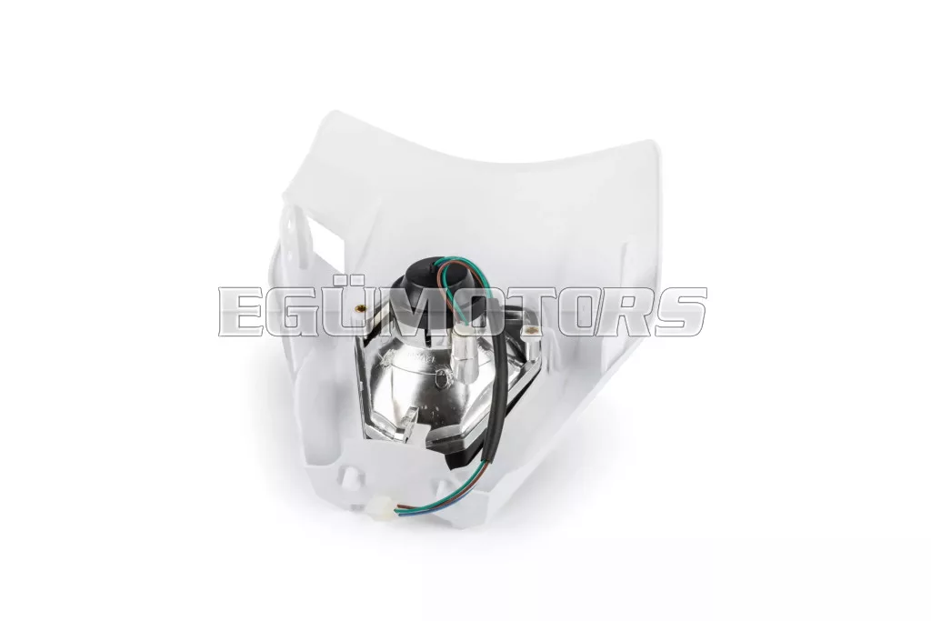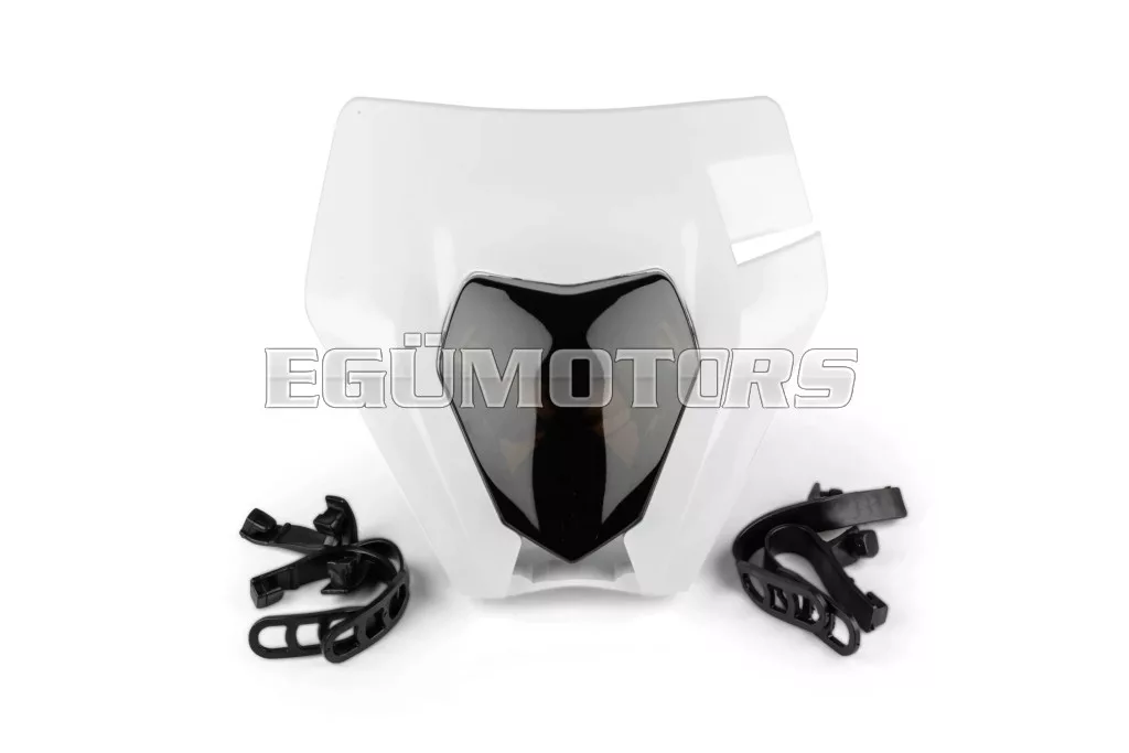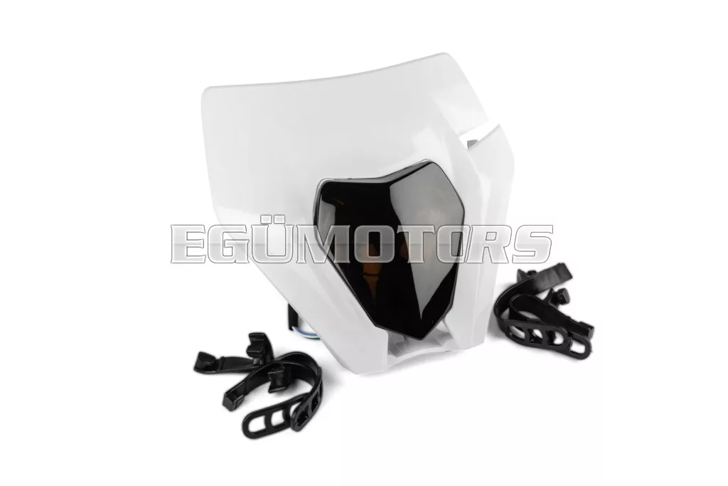 Fényszóró burkolat KTM EXC 2020-2023, fehér, sötétített lencsével, 50cc-es supermoto, motocross, enduro motorokra vagy egyéb kétkerekű járművekre.