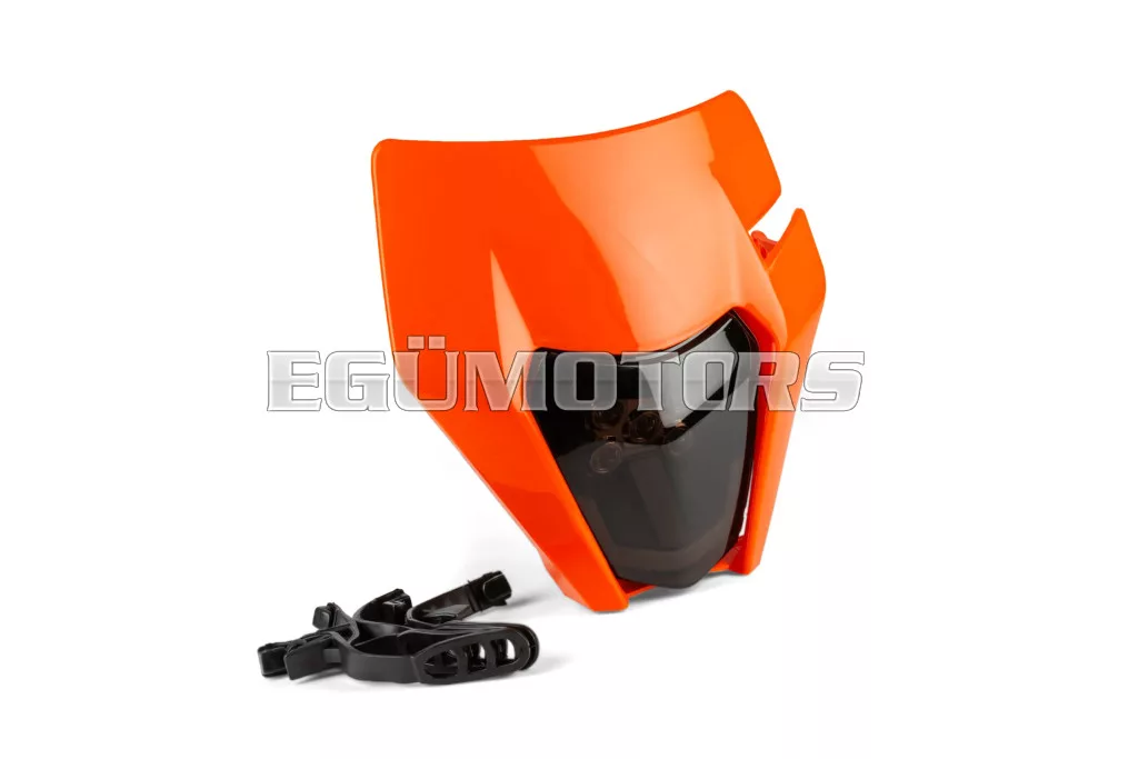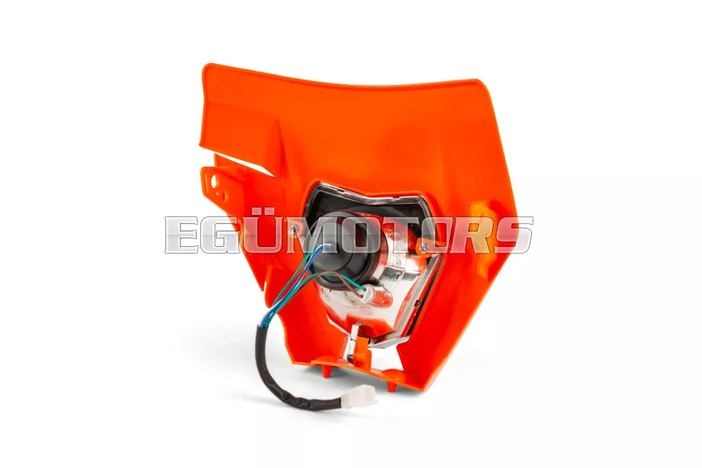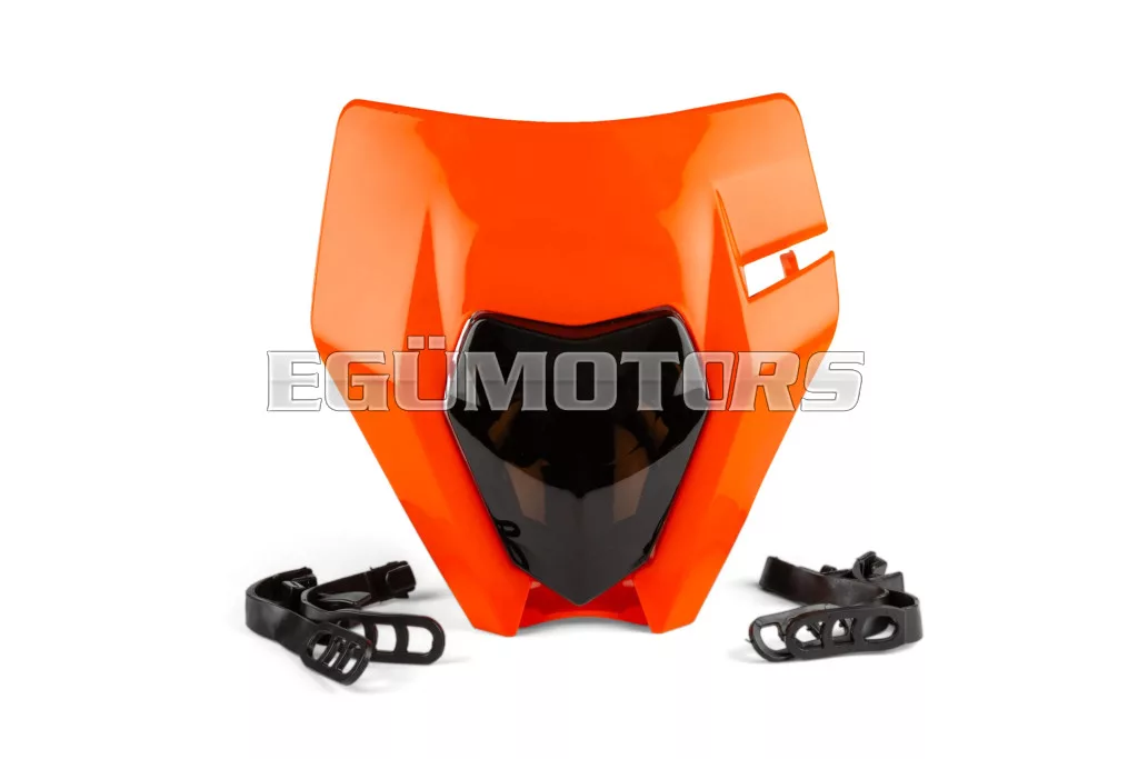 Fényszóró burkolat KTM EXC 2020-2023, narancssárga, sötétített lencsével, 50cc-es supermoto, motocross, enduro motorokra vagy egyéb kétkerekű járművekre.