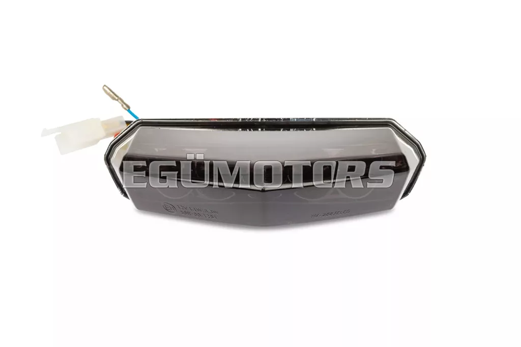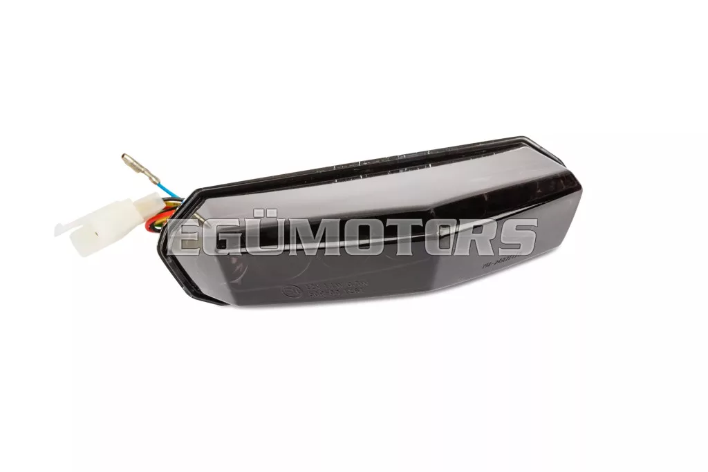 Hátsó lámpa LED irányjelzőkkel, füstszínű kivitelben Derbi DRD / Derbi X-Race modellekhez.