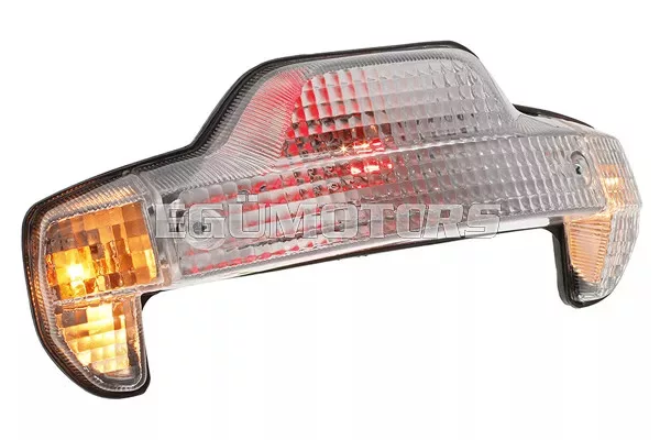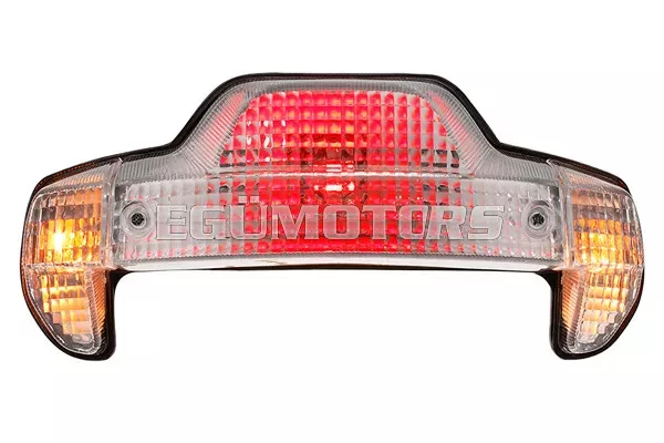 STR8 hátsó lámpa beépített irányjelzőkkel, alkalmas MBK Booster Spirit és Yamaha BW’s modellekhez 1999-2004 között.
