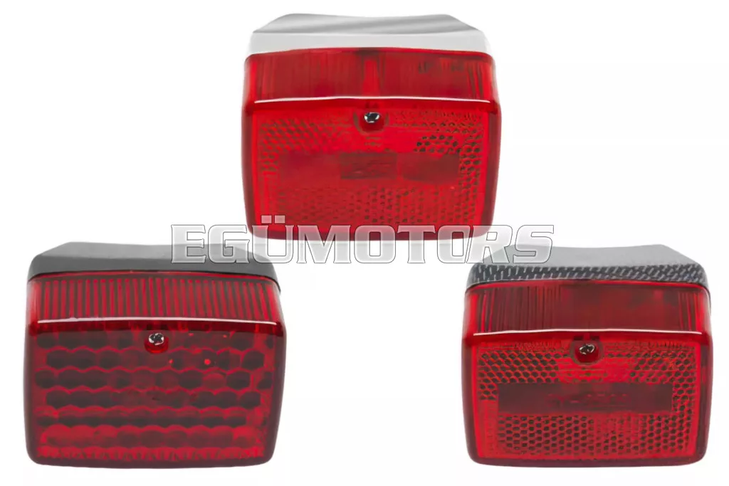 Klasszikus hátsó lámpa fekete/piros színben, MBK 51 és Peugeot 103 veterán mopedekhez.