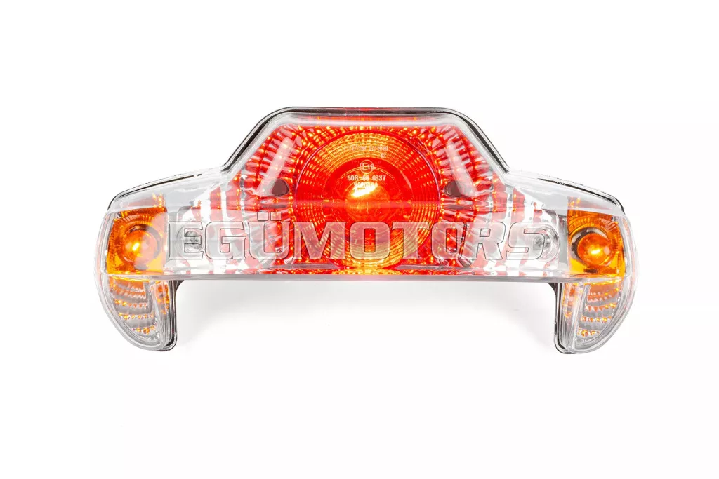Hátsó lámpa irányjelzőkkel, átlátszó „Lexus” stílus.