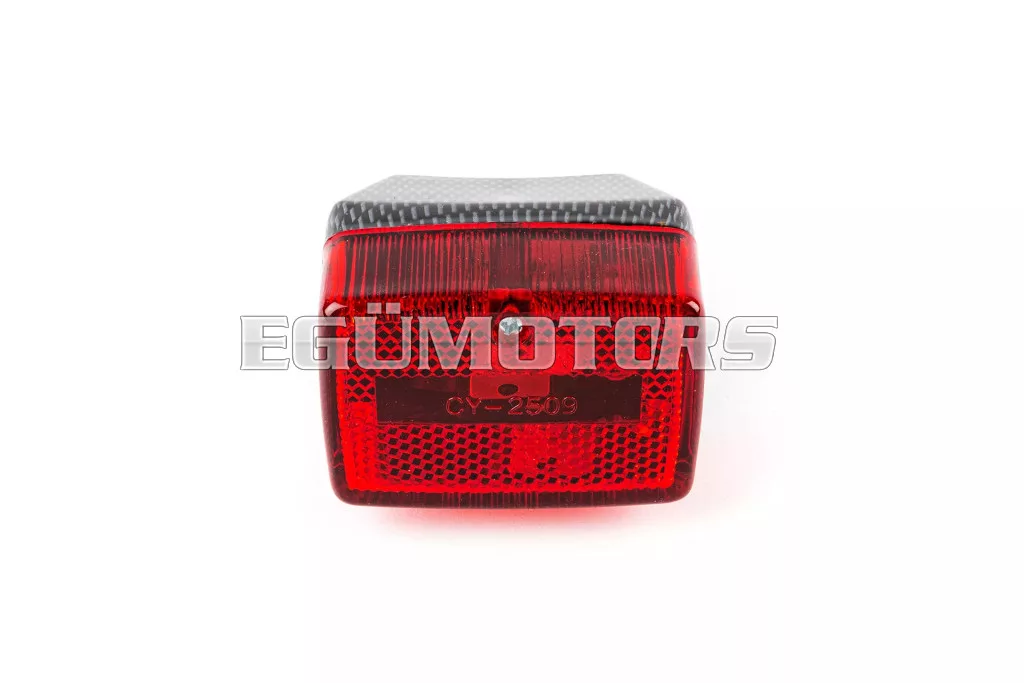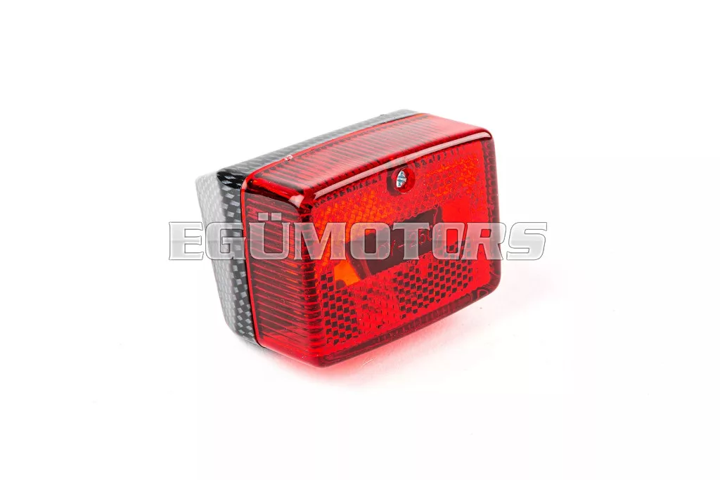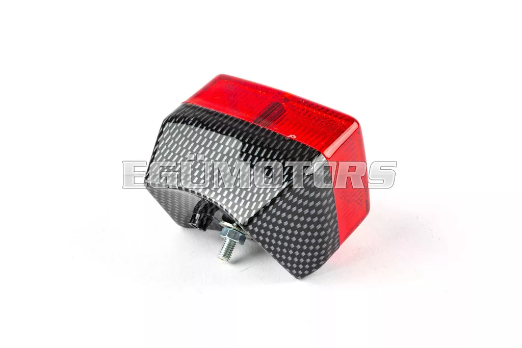 Klasszikus hátsó lámpa karbon hatású/piros színben MBK 51 és Peugeot 103 veterán mopedekhez.