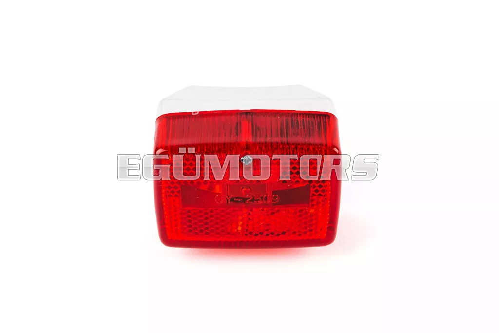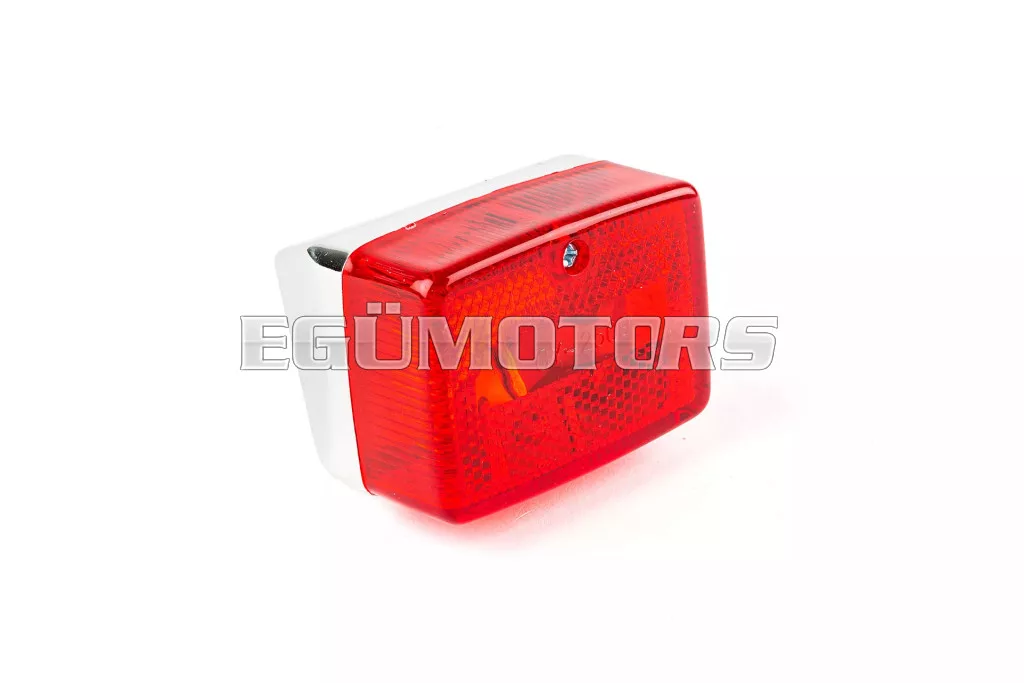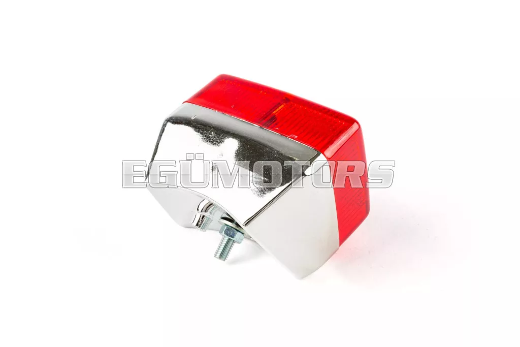 Klasszikus hátsó lámpa króm/piros színben MBK 51 és Peugeot 103 veterán mopedekhez.