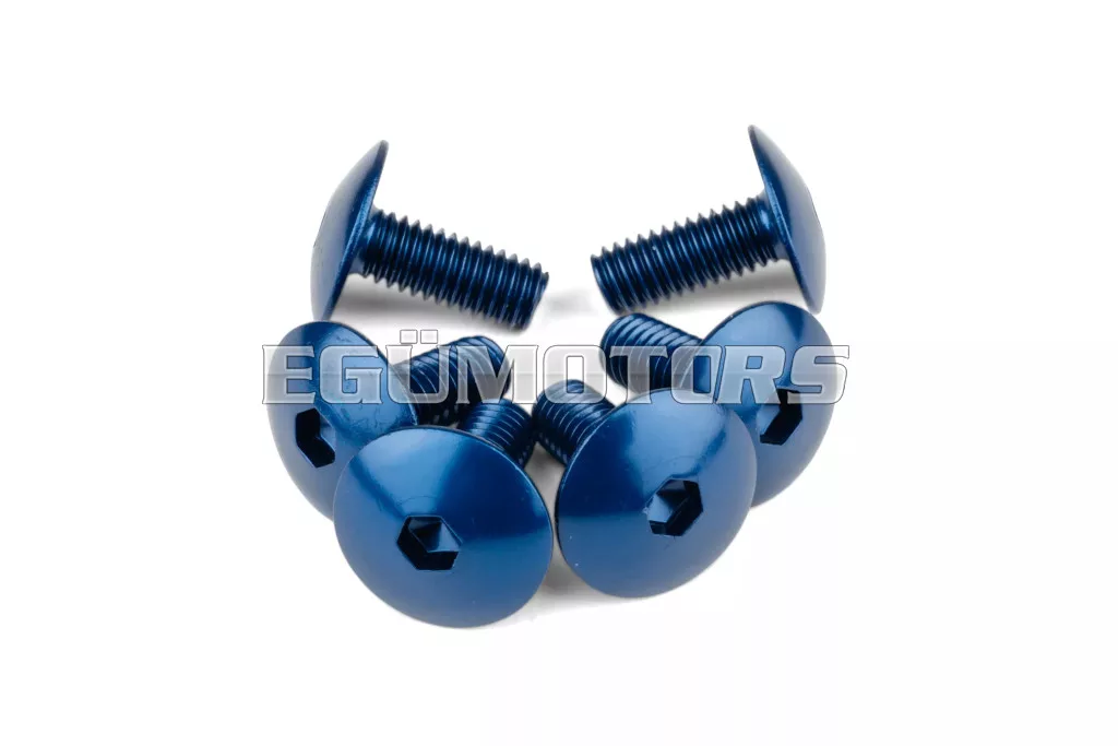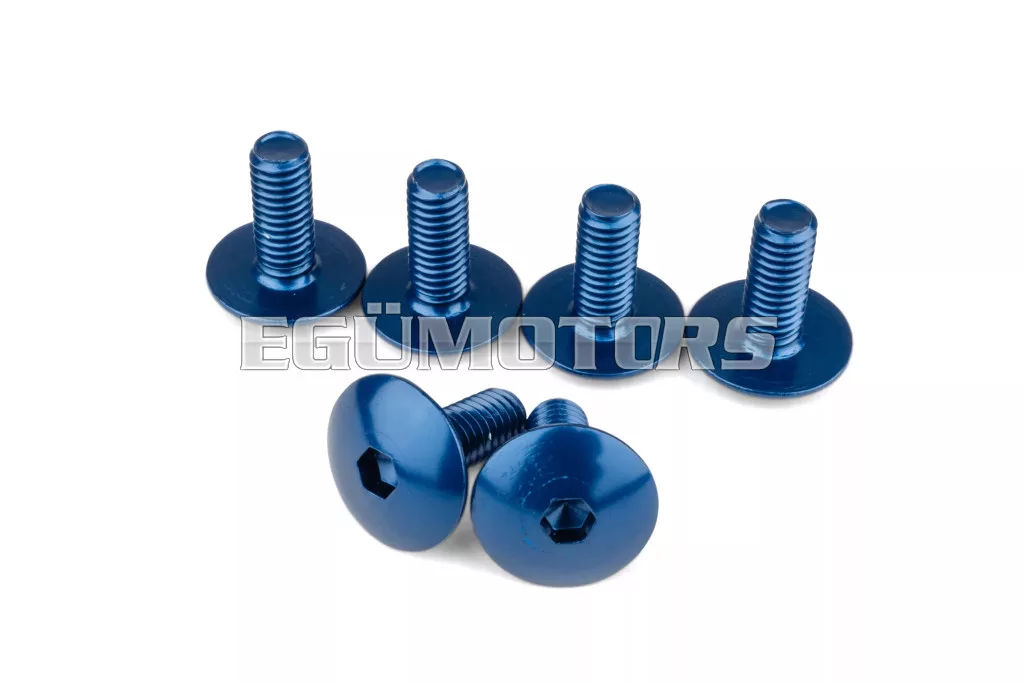 Kiváló minőségű, kék színű alumínium önmetsző csavarok idomok rögzítéséhez. Ideális megoldás a burkolatelemek biztonságos felfogatására, miközben egy kis optikai tuningot is ad a motor vagy robogó megjelenéséhez.