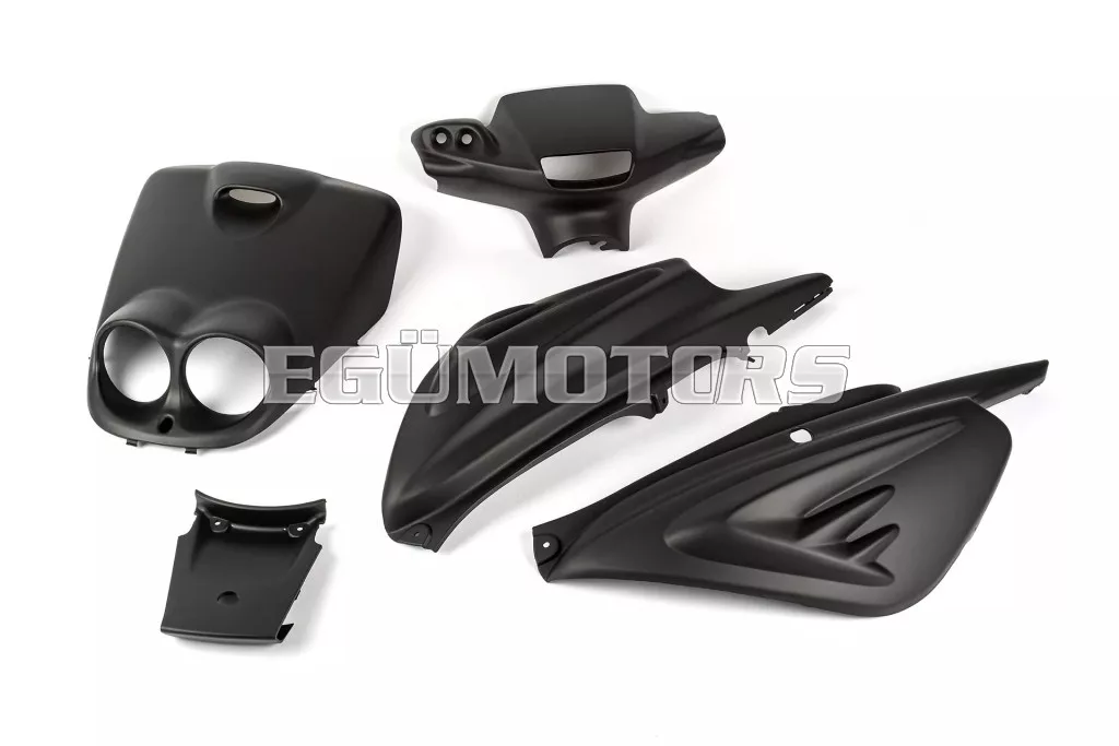 A készlet 5 részből áll, amely lehetővé teszi a szín egyszerű megváltoztatását, illetve a sérült vagy elhasználódott burkolatelemek cseréjét. Minden alkatrész megfelel az eredeti elemeknek, és módosítás nélkül cserélhető.