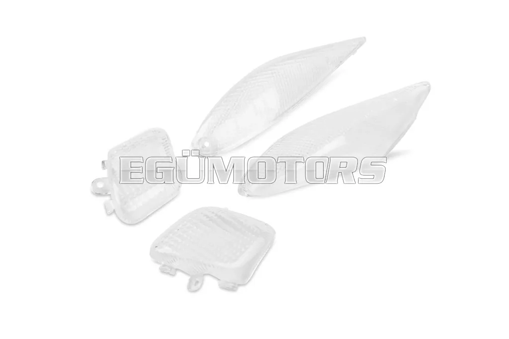 Komplett készlet az első és hátsó irányjelzőkhöz. Mivel megegyeznek az eredeti búrákkal, a sérült darabok egyszerűen lecserélhetők.