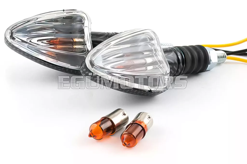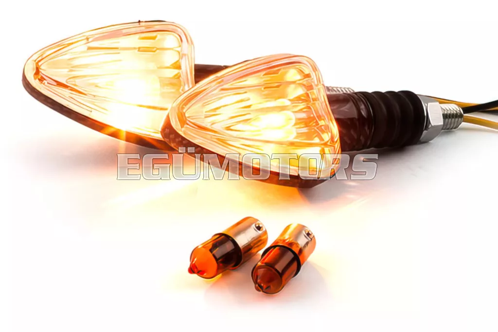 A háromszög alakú irányjelzők kompaktak, és könnyen felszerelhetők a motorkerékpárra.