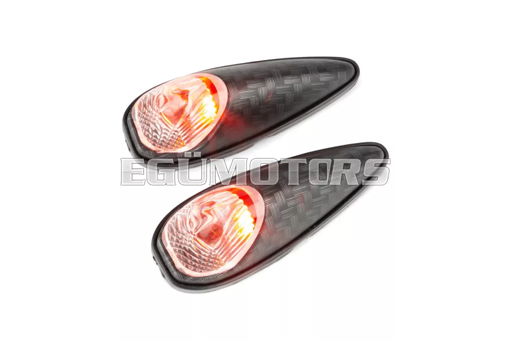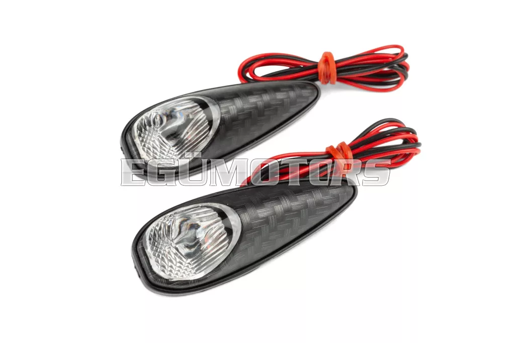 STR8 egyedi kialakítású ragasztható, csepp alakú irányjelzők / egyedi világítás, átlátszó lencsével és karbon hatású házzal.