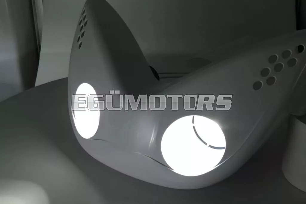 A hagyományos halogén lámpáknál jóval erősebb és energiatakarékosabb. Az új dizájn agresszívebb megjelenést kölcsönöz a járműnek, és tökéletesen illeszkedik a népszerű STR8 idomkészletekhez.