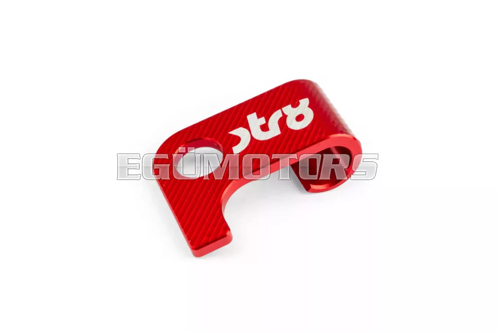 Az eredeti, apró bowdenvezető konzol, amely a kuplungbowdent a blokk közelében tartja és megakadályozza annak elmozdulását, egyszerű és visszafogott megjelenésű.