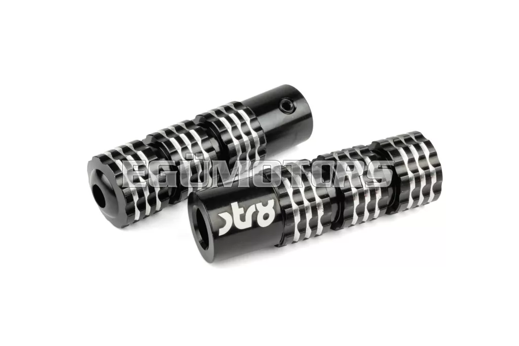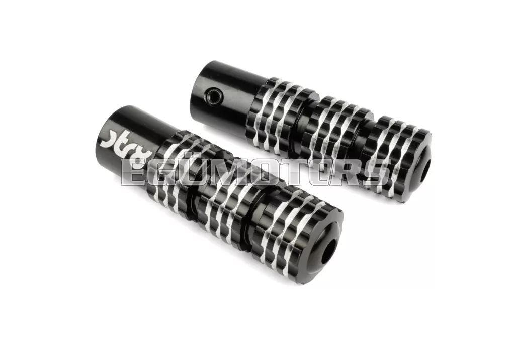 A felszerelés egyszerű: a lábtartók 16 mm-es rögzítőcsatlakozással és imbuszcsavarral rögzíthetők, így kiváló cserealkatrészt jelentenek mopeded gyári lábtartói helyett.