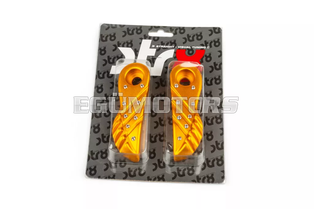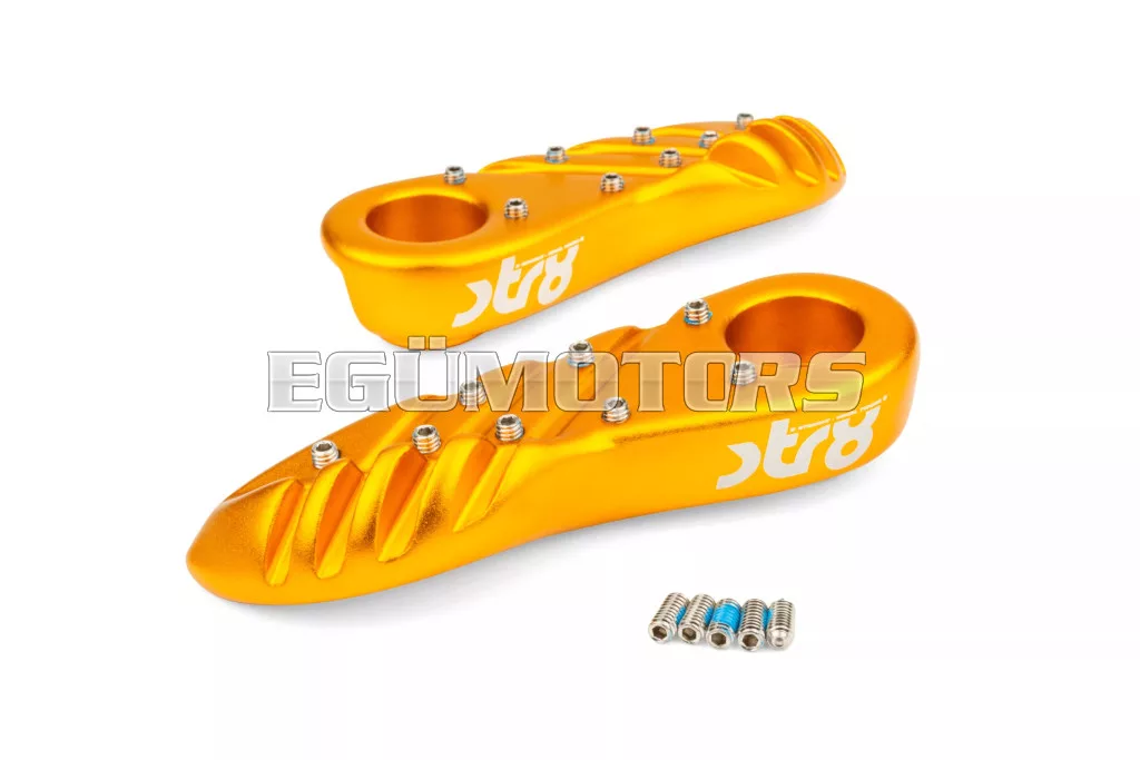 A lábtartók eloxált alumíniumból készültek, lézergravírozott STR8 logóval.