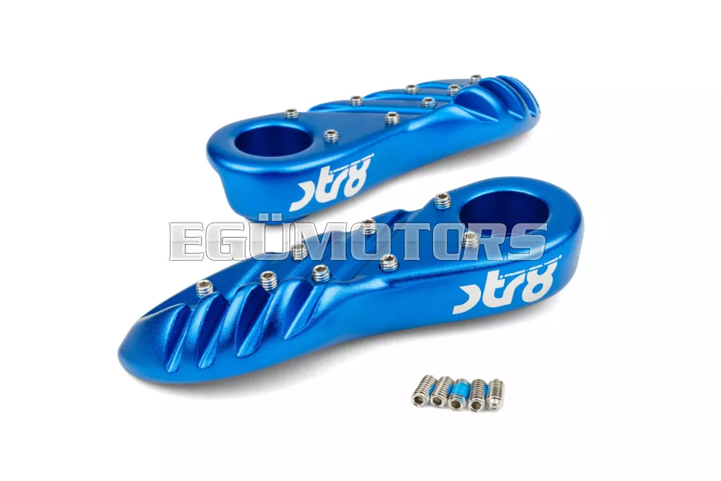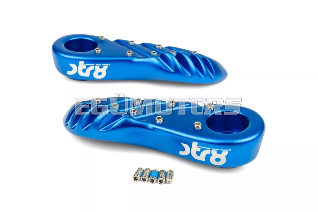 A lábtartók eloxált alumíniumból készültek, lézergravírozott STR8 logóval.