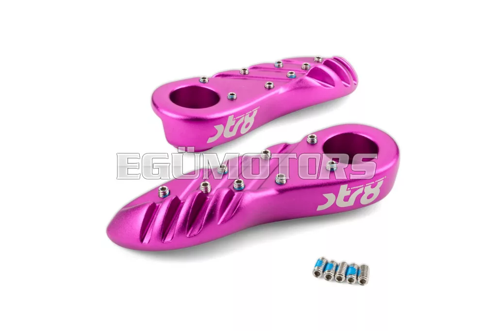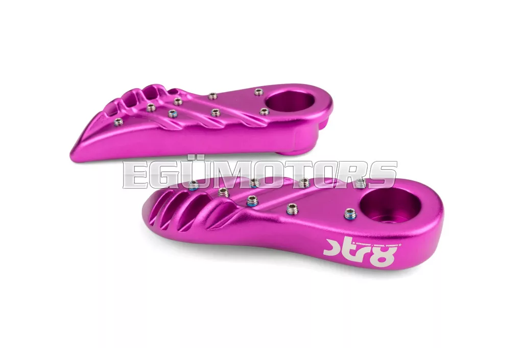 A lábtartók eloxált alumíniumból készültek, lézergravírozott STR8 logóval.