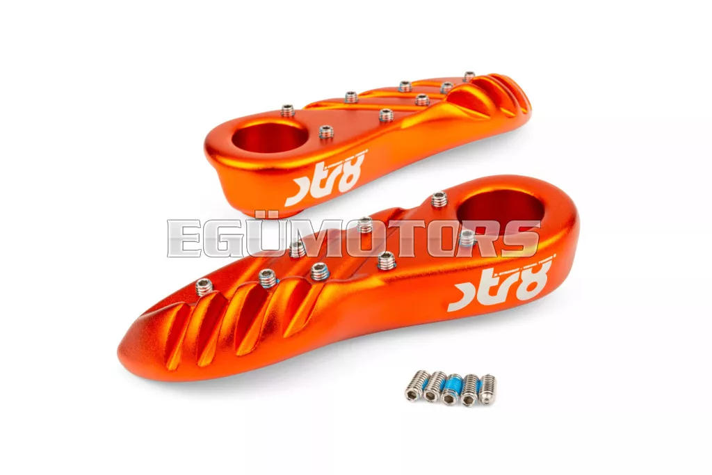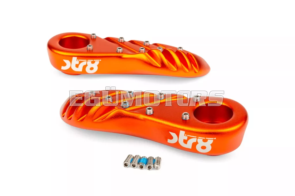 A lábtartók eloxált alumíniumból készültek, lézergravírozott STR8 logóval.