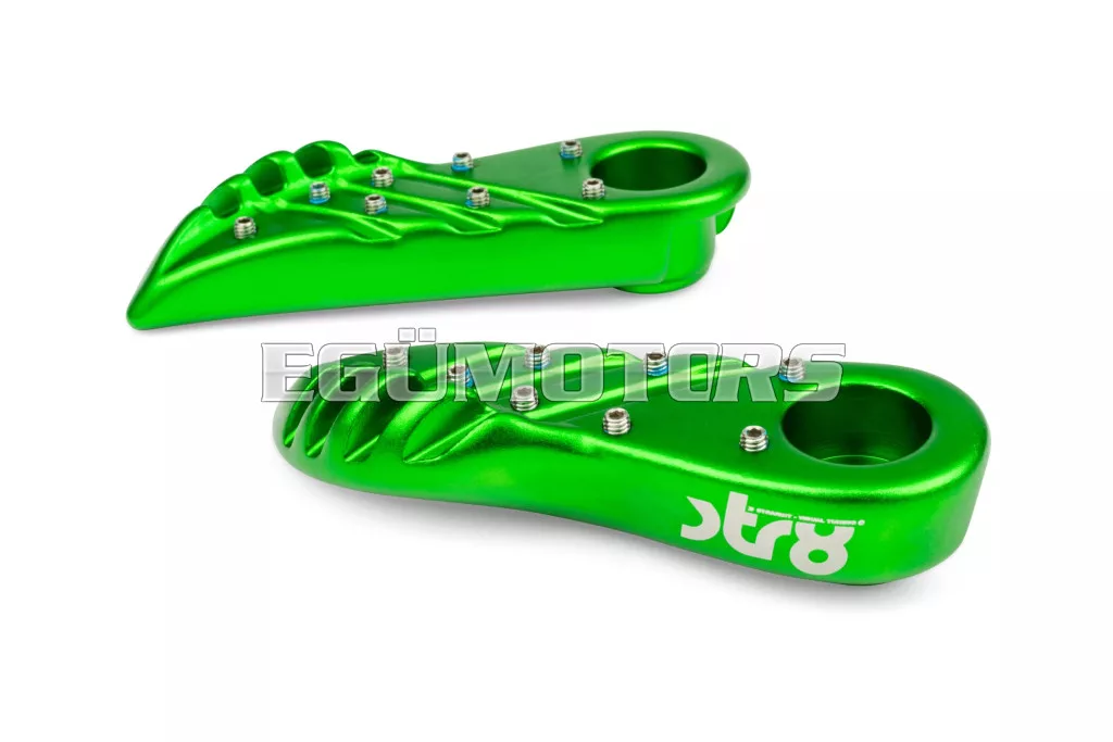 A lábtartók eloxált alumíniumból készültek, lézergravírozott STR8 logóval.
