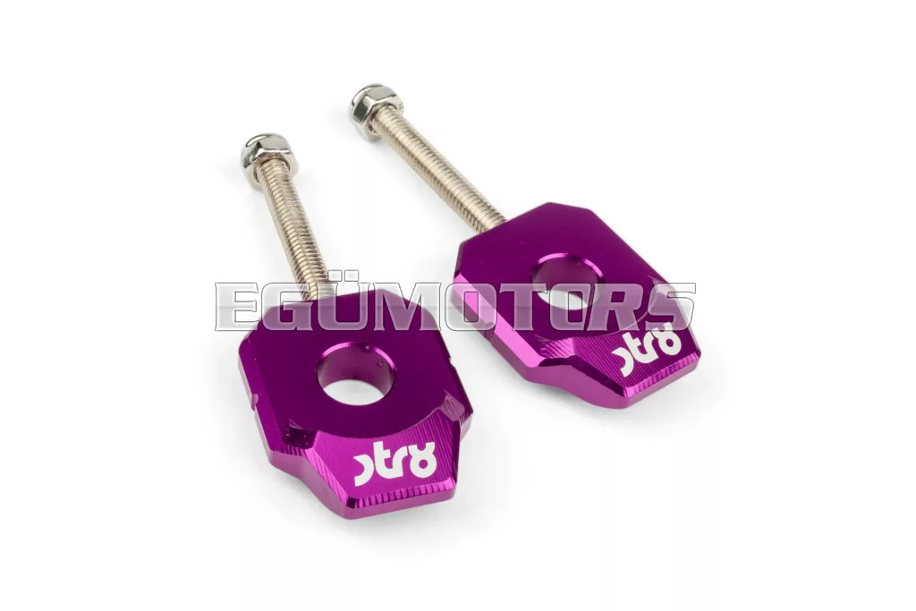 STR8 alumínium láncfeszítő Derbi 50cc-es supermoto / enduro motorokhoz, 12 mm-es hátsó tengellyel.