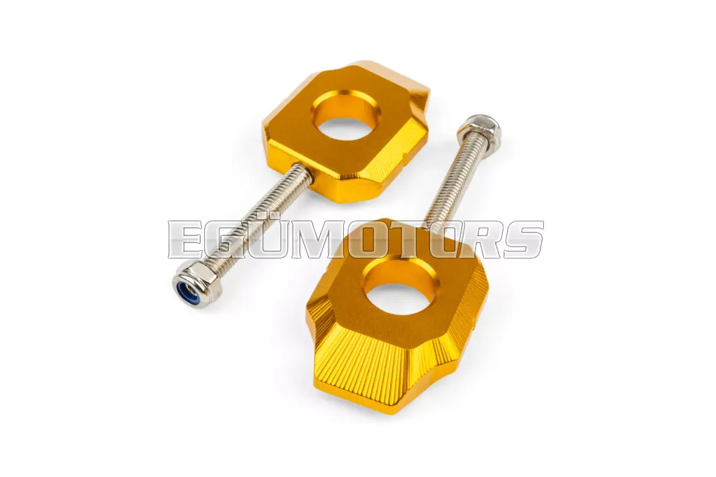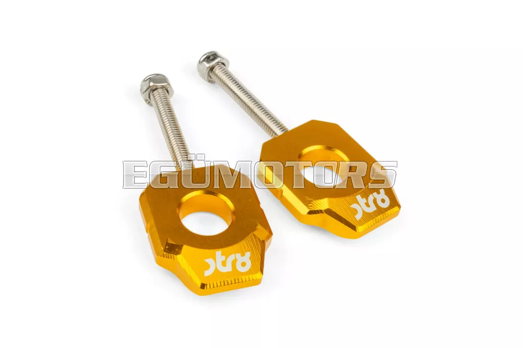 STR8 alumínium láncfeszítő Derbi 50cc-es supermoto / enduro motorokhoz, 15 mm-es hátsó tengellyel.