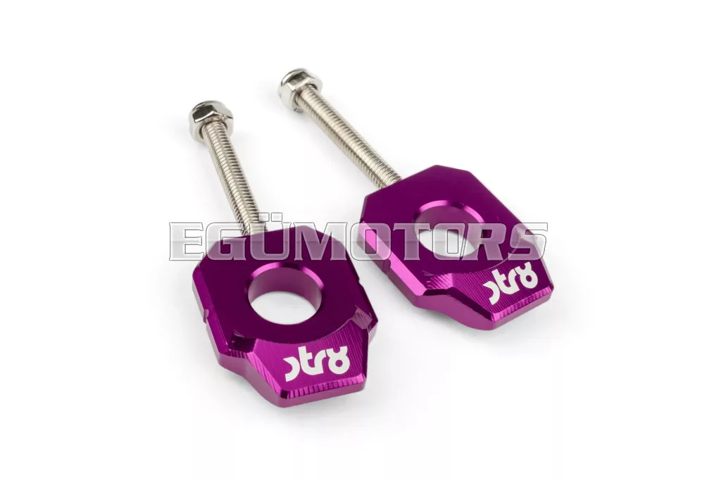STR8 alumínium láncfeszítő Derbi 50cc-es supermoto / enduro motorokhoz, 15 mm-es hátsó tengellyel.