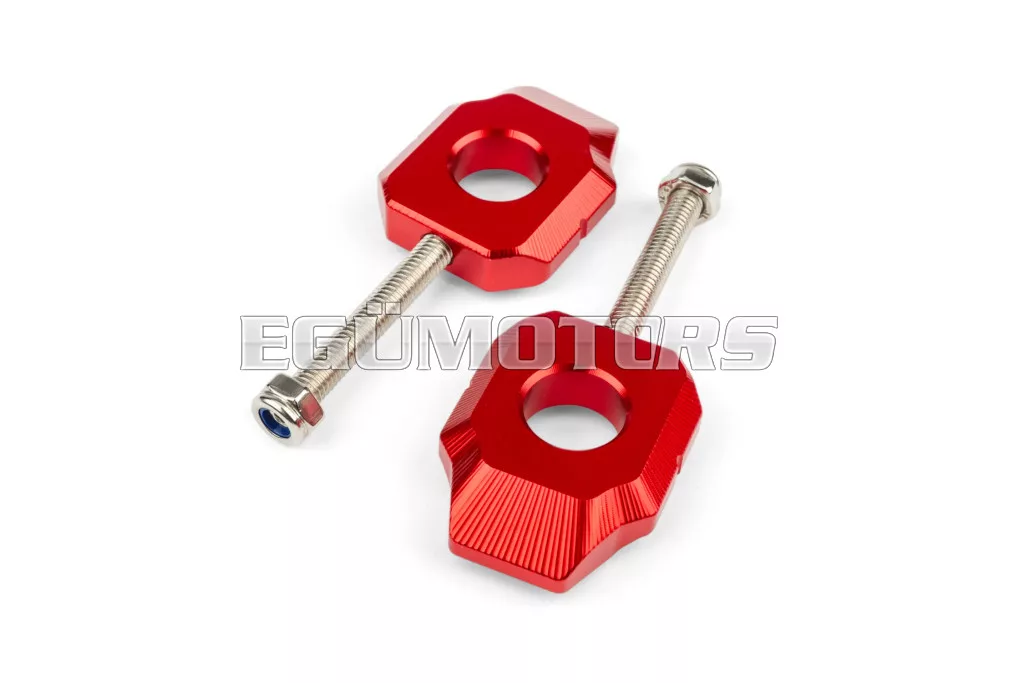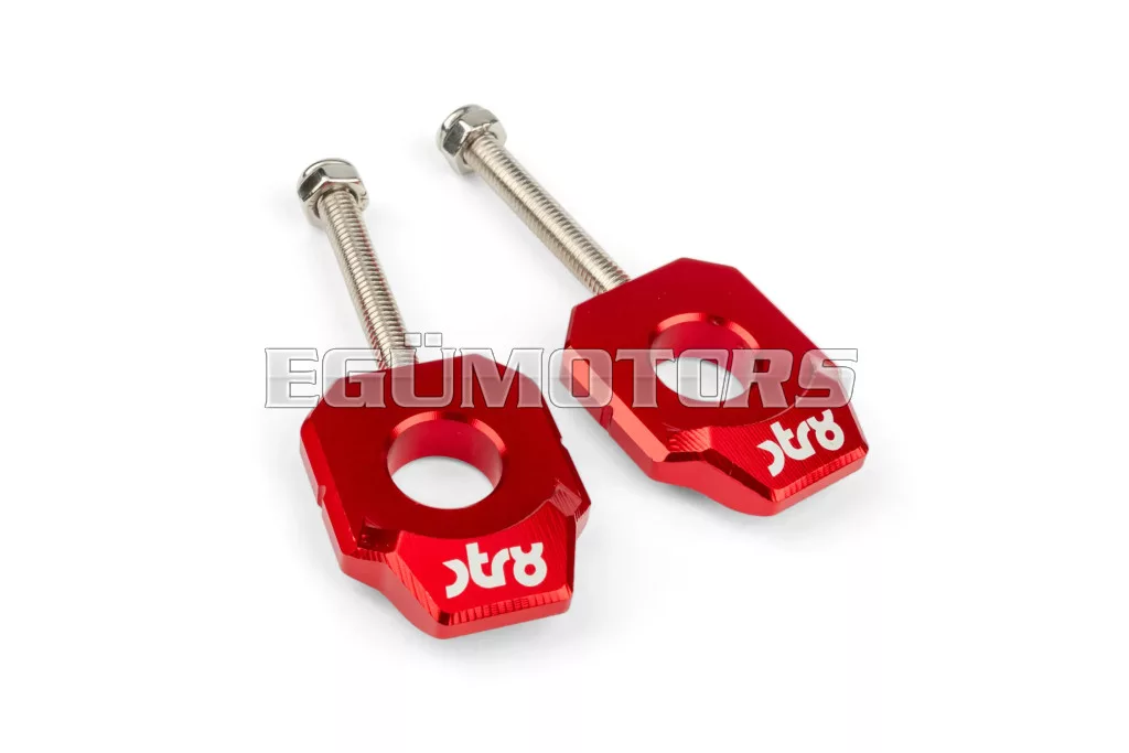 STR8 alumínium láncfeszítő Derbi 50cc-es supermoto / enduro motorokhoz, 15 mm-es hátsó tengellyel.