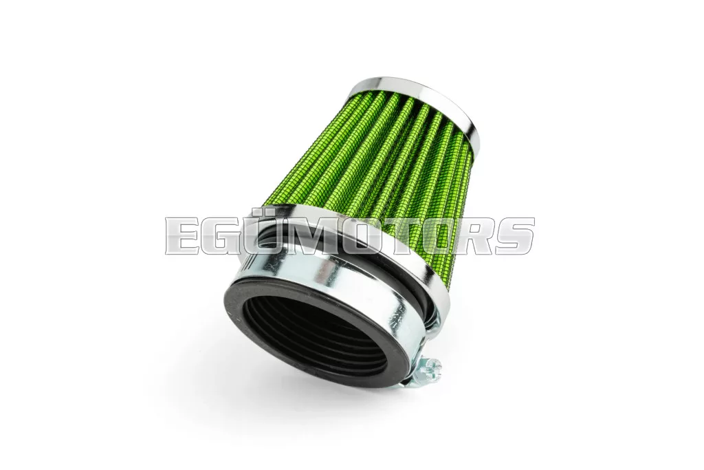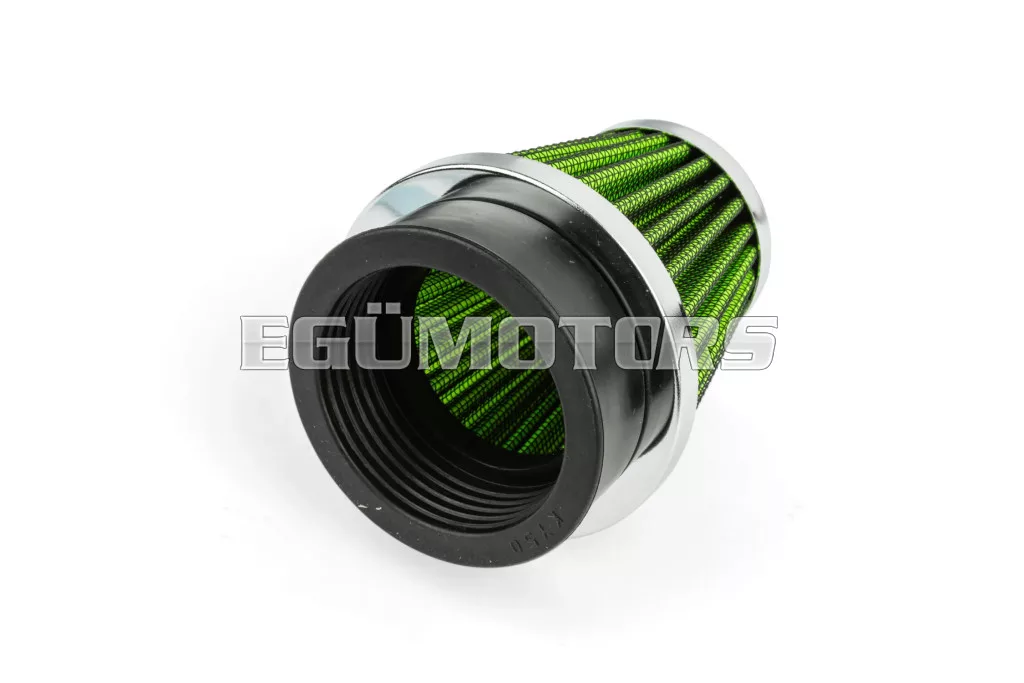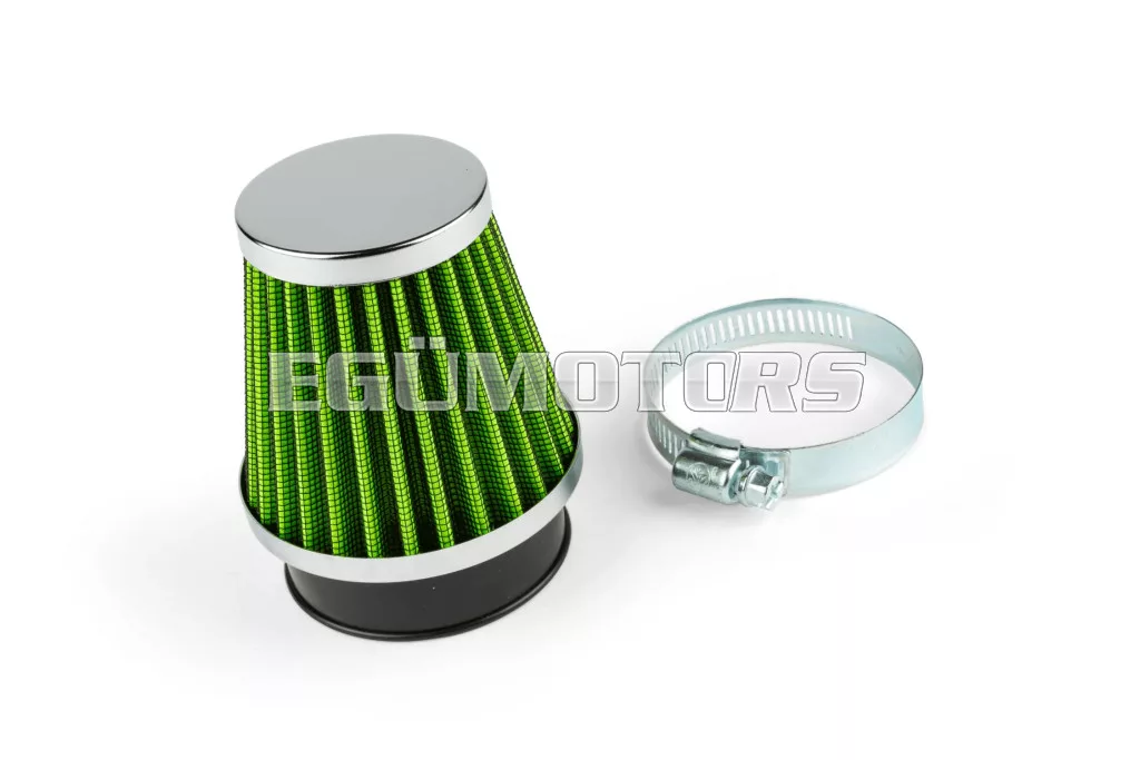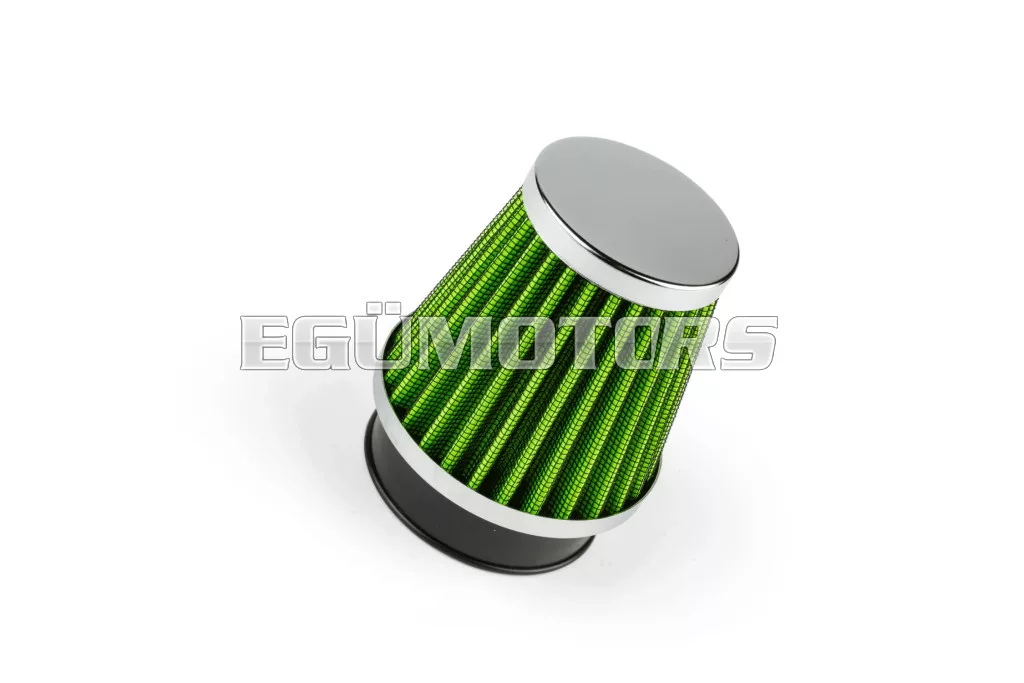 Nyitott tuning légszűrő, KN típus, egyenes, 50mm, krómozott / zöld.