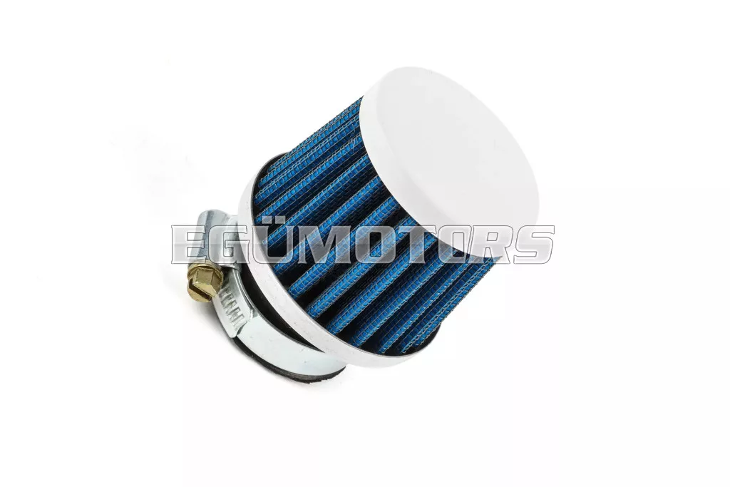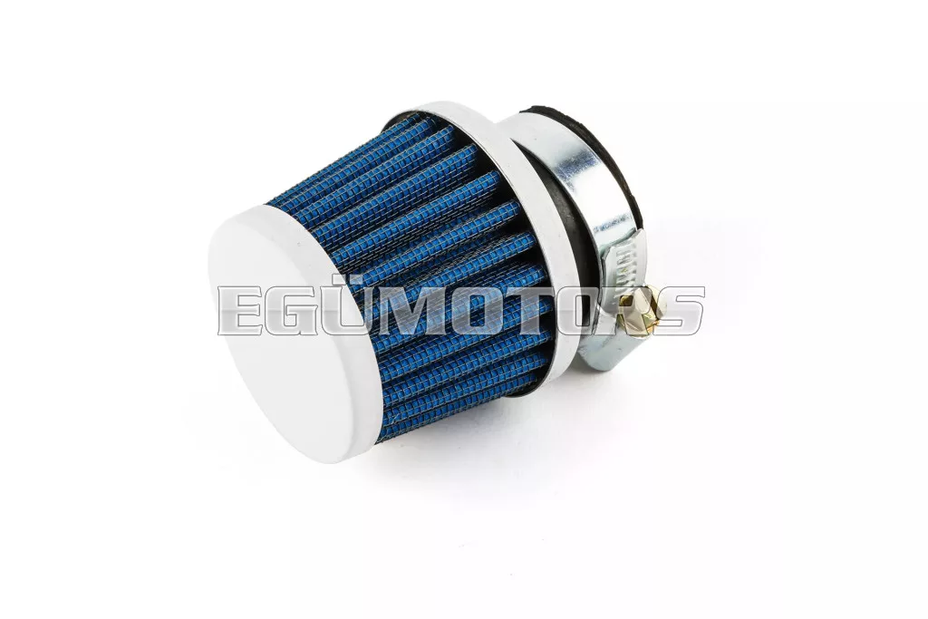 Kúpos KN légszűrő, kicsi, Ø 28-35 mm, kék. Nyitott tuning légszűrő fehér színben.